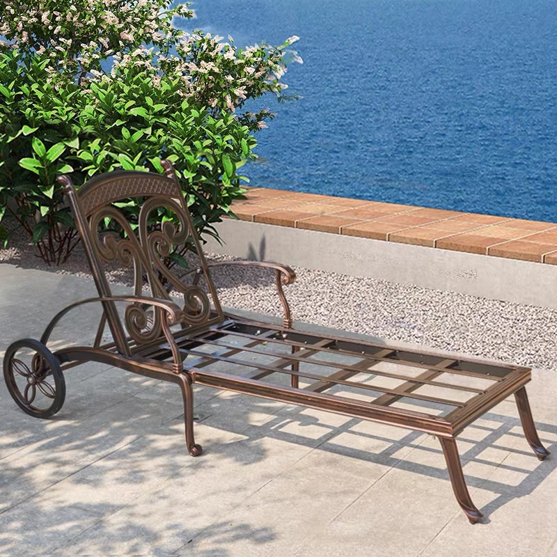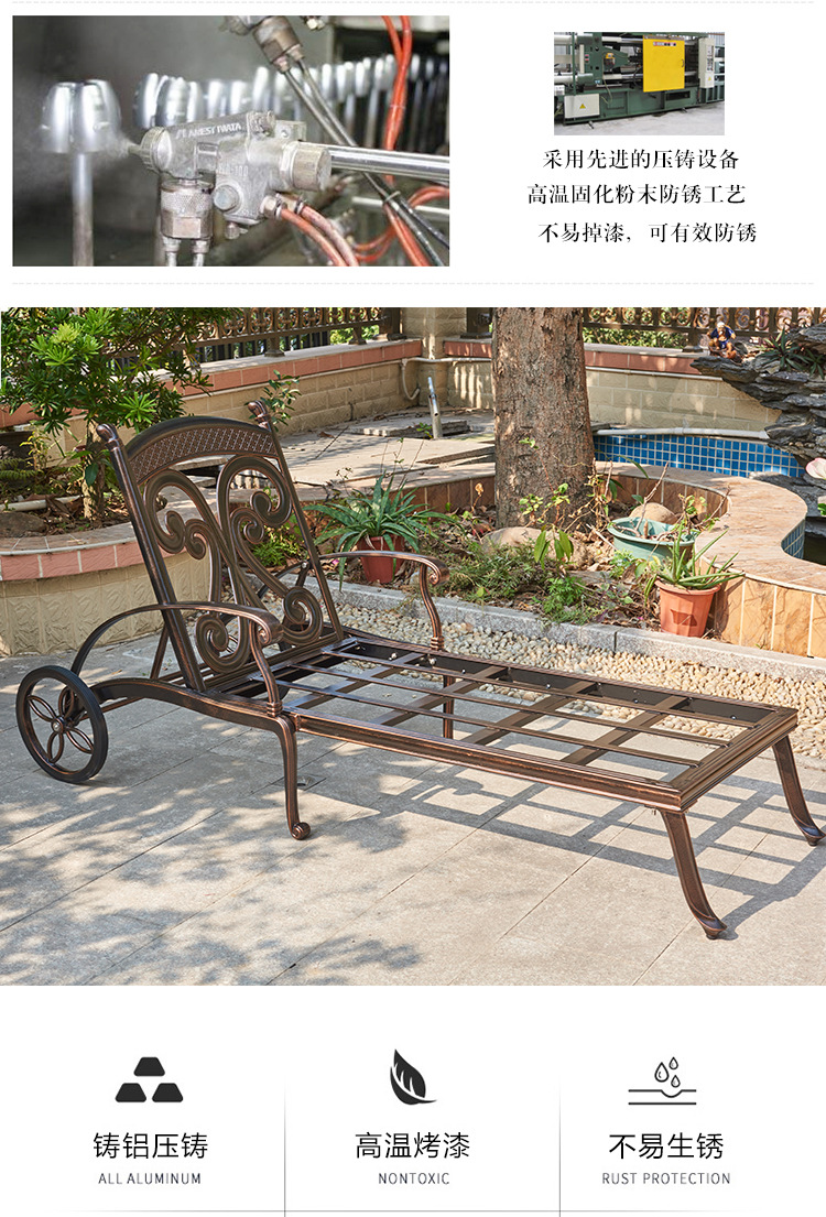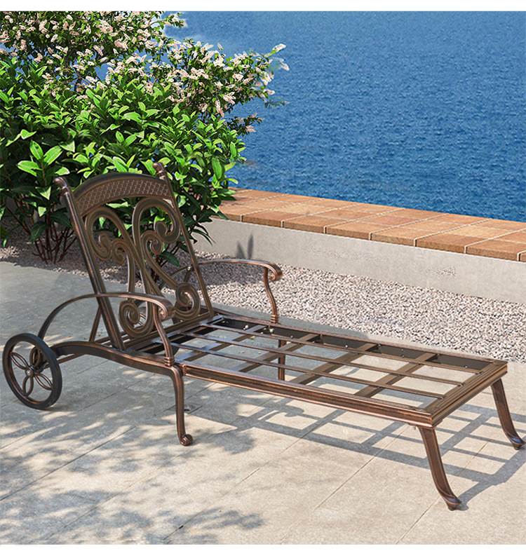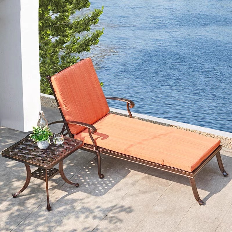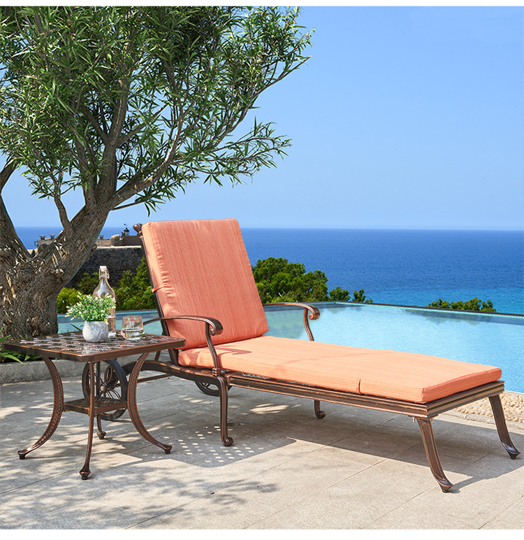 야외 캐스트 알루미늄 침대 수영장 테라스 호텔 레저 비치 의자 파티오 라운지 침대 방수 태양 보호