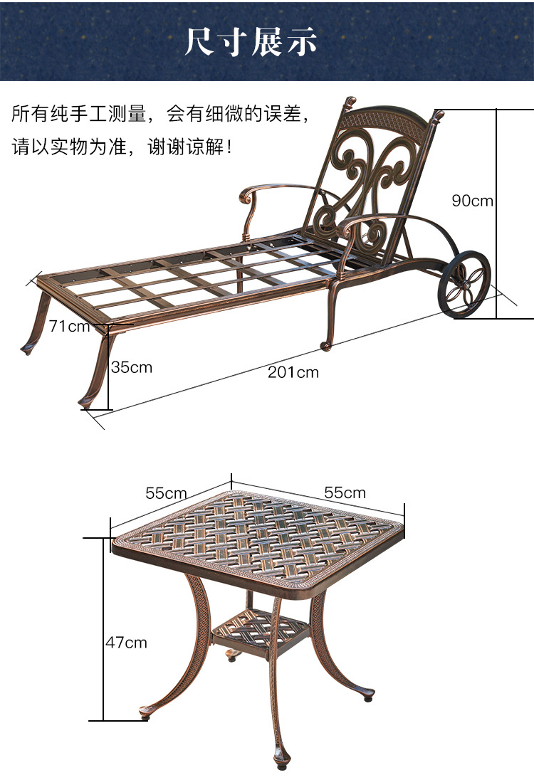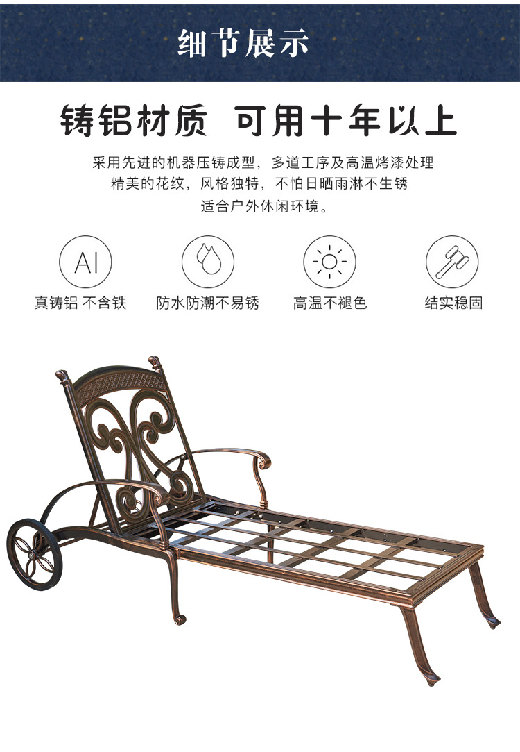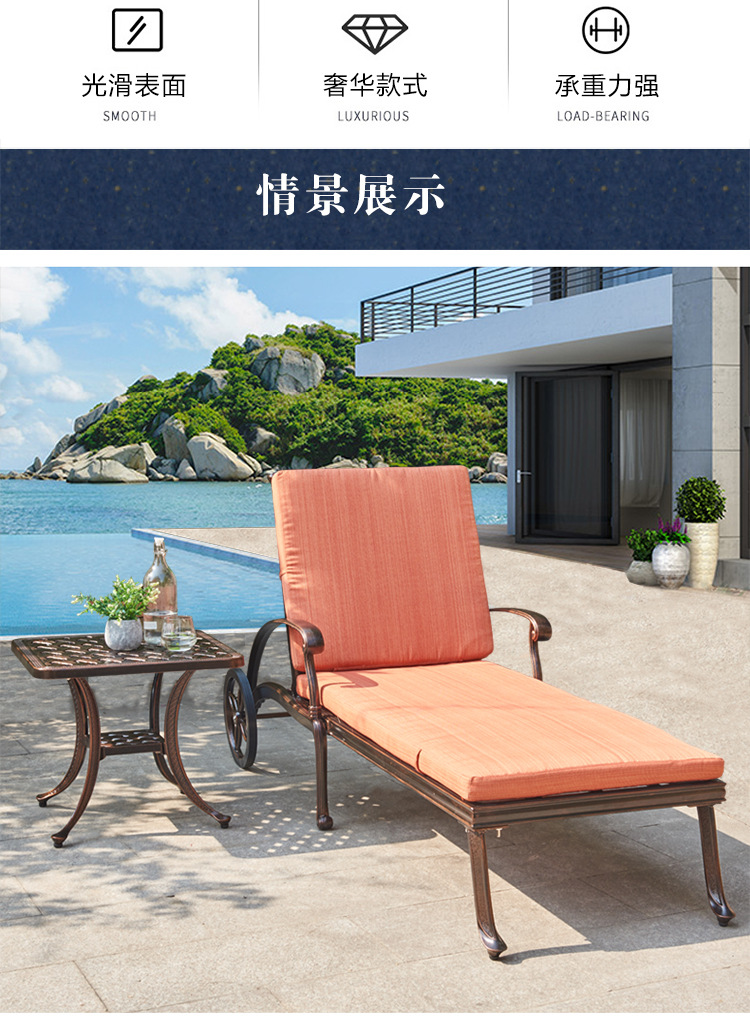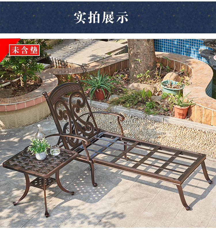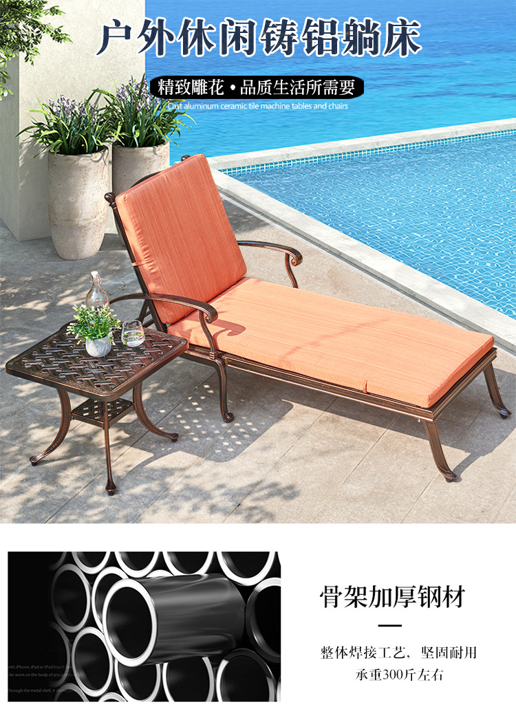 야외 캐스트 알루미늄 침대 수영장 테라스 호텔 레저 비치 의자 파티오 라운지 침대 방수 태양 보호