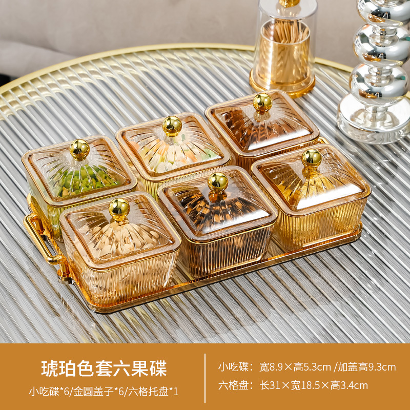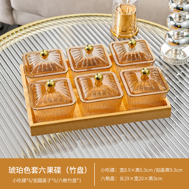 • 대나무 플레이트 앰버 6 칸 플레이트 뚜껑 PS