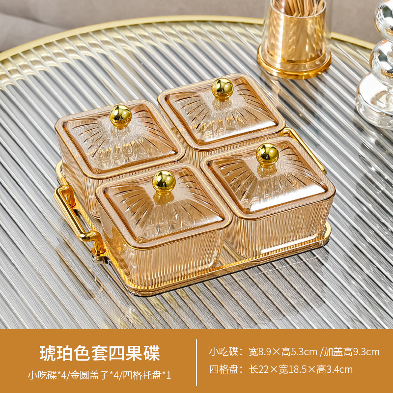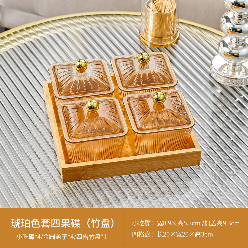 • 대나무 플레이트 앰버 4 칸 플레이트 뚜껑 PS