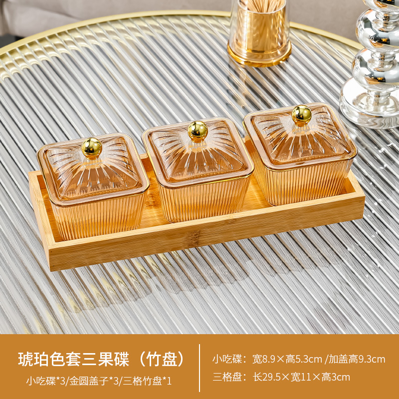 • 대나무 플레이트 앰버 3 그리드 디스크 뚜껑 PS