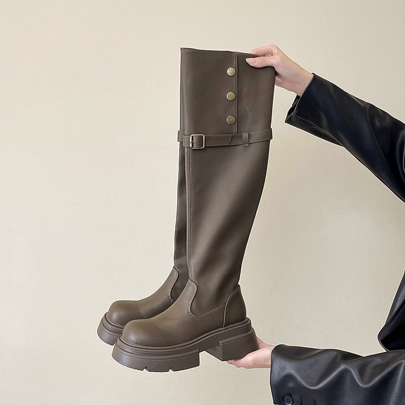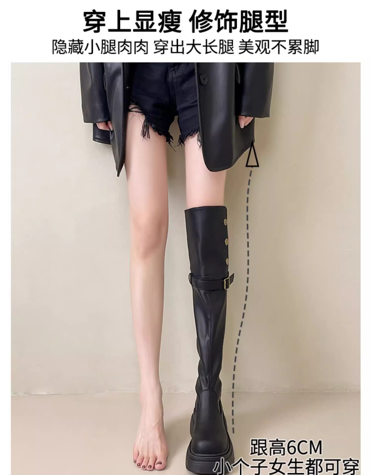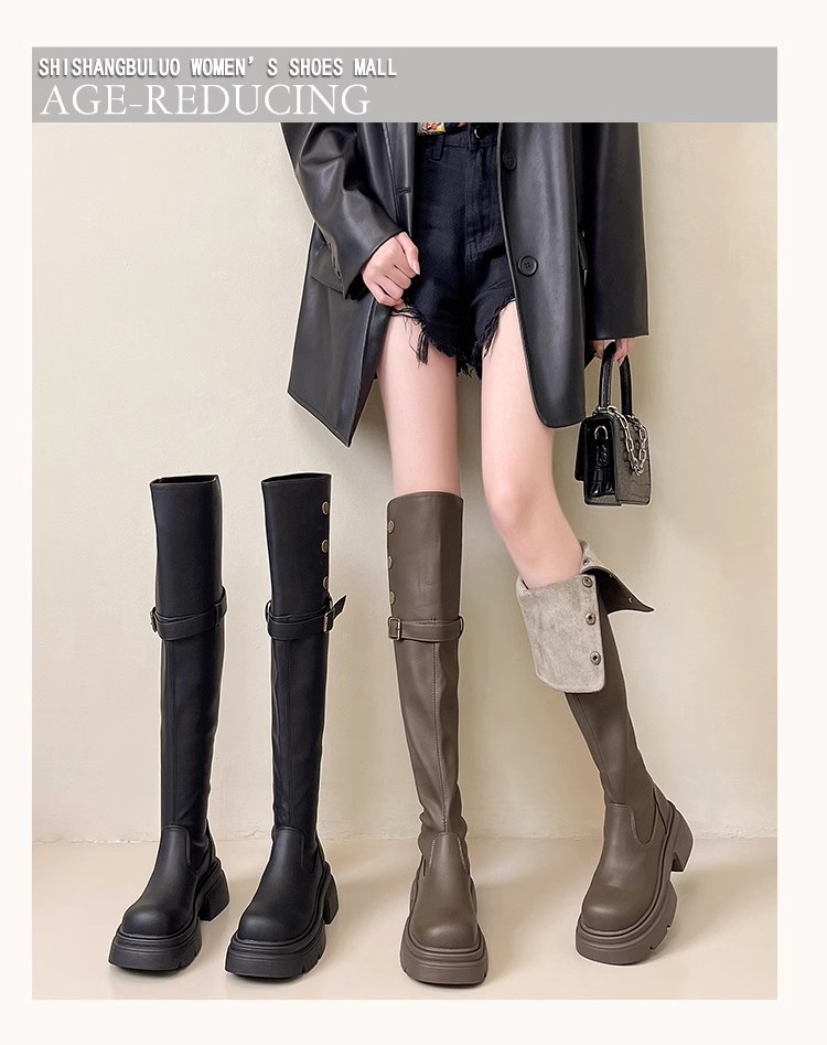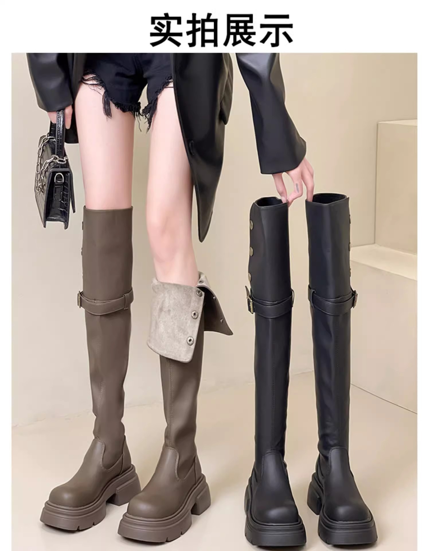 2 착용 두꺼운 밑창 부츠 여성의 2024 가을과 겨울 새로운 조커 두꺼운 발 뒤꿈치 기모 두꺼운 다리 부츠 기사 무릎 부츠스토어 가기