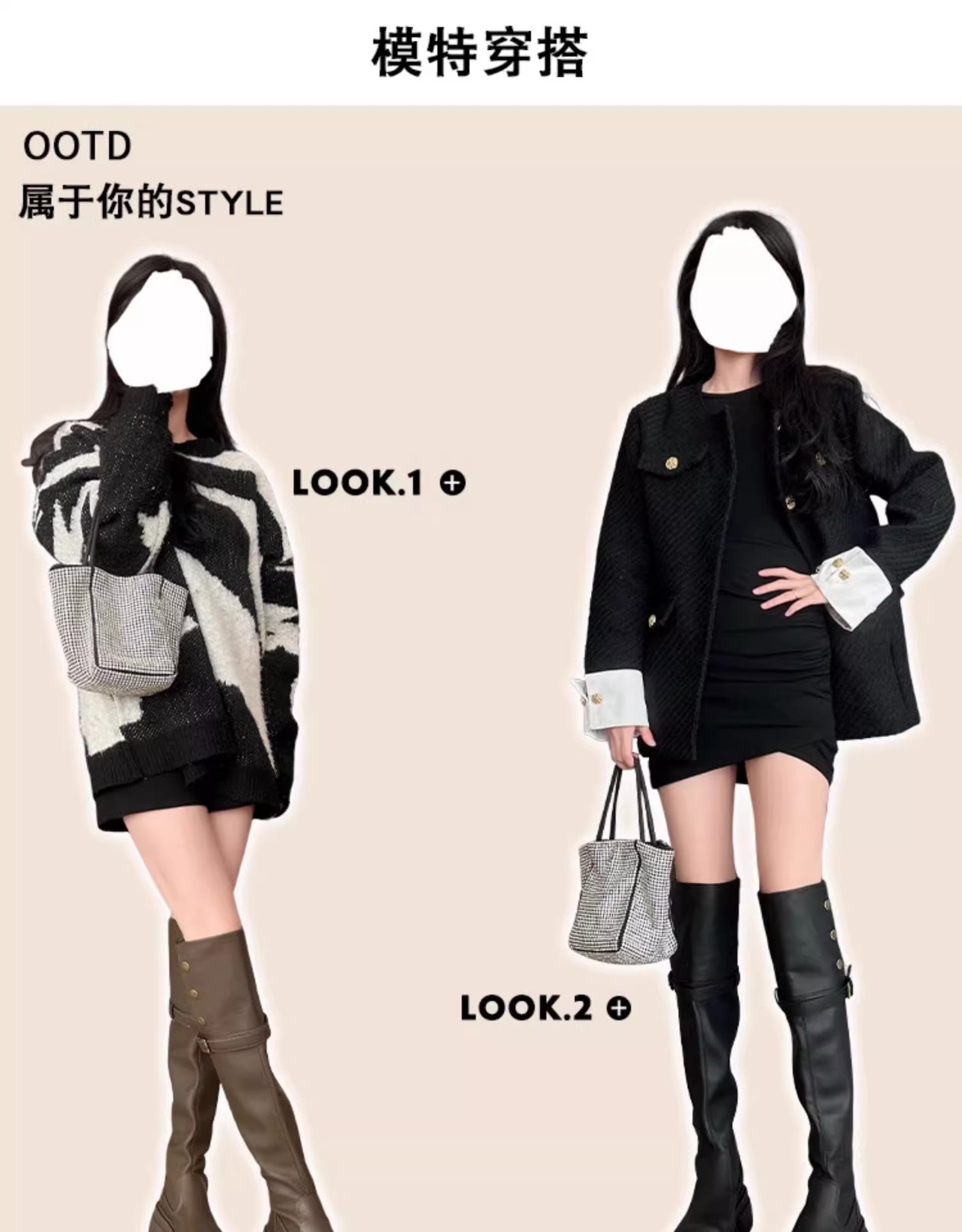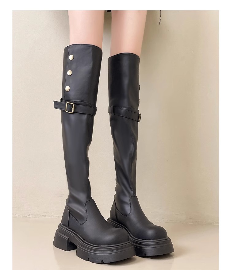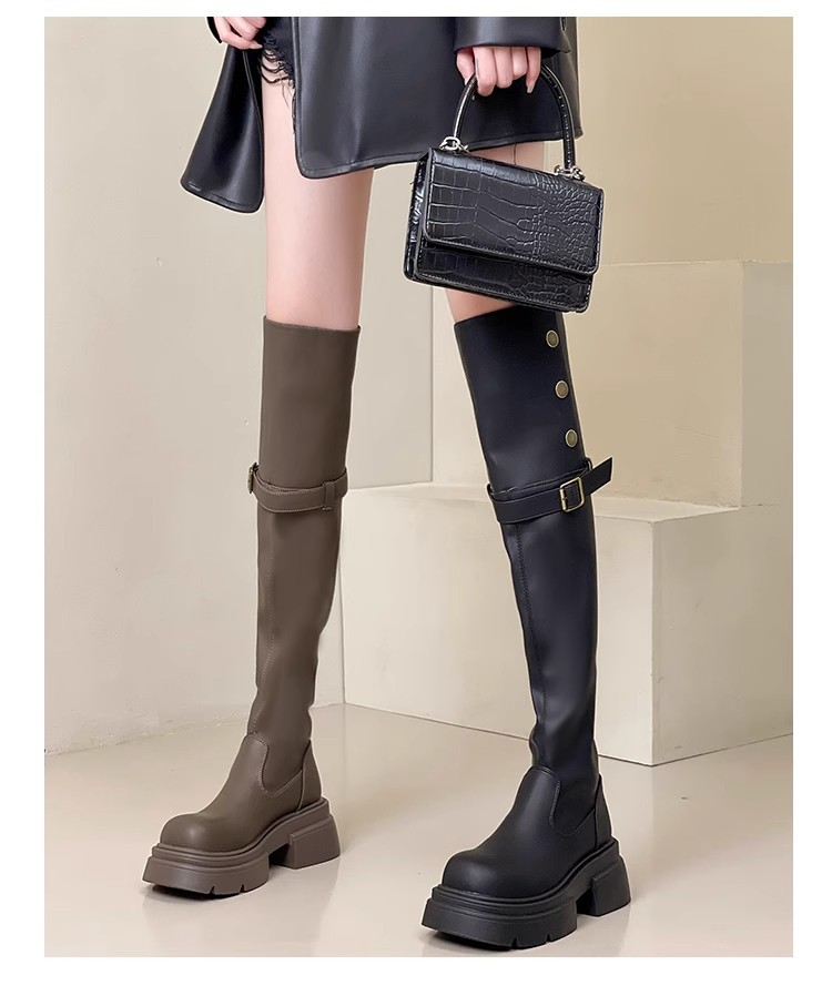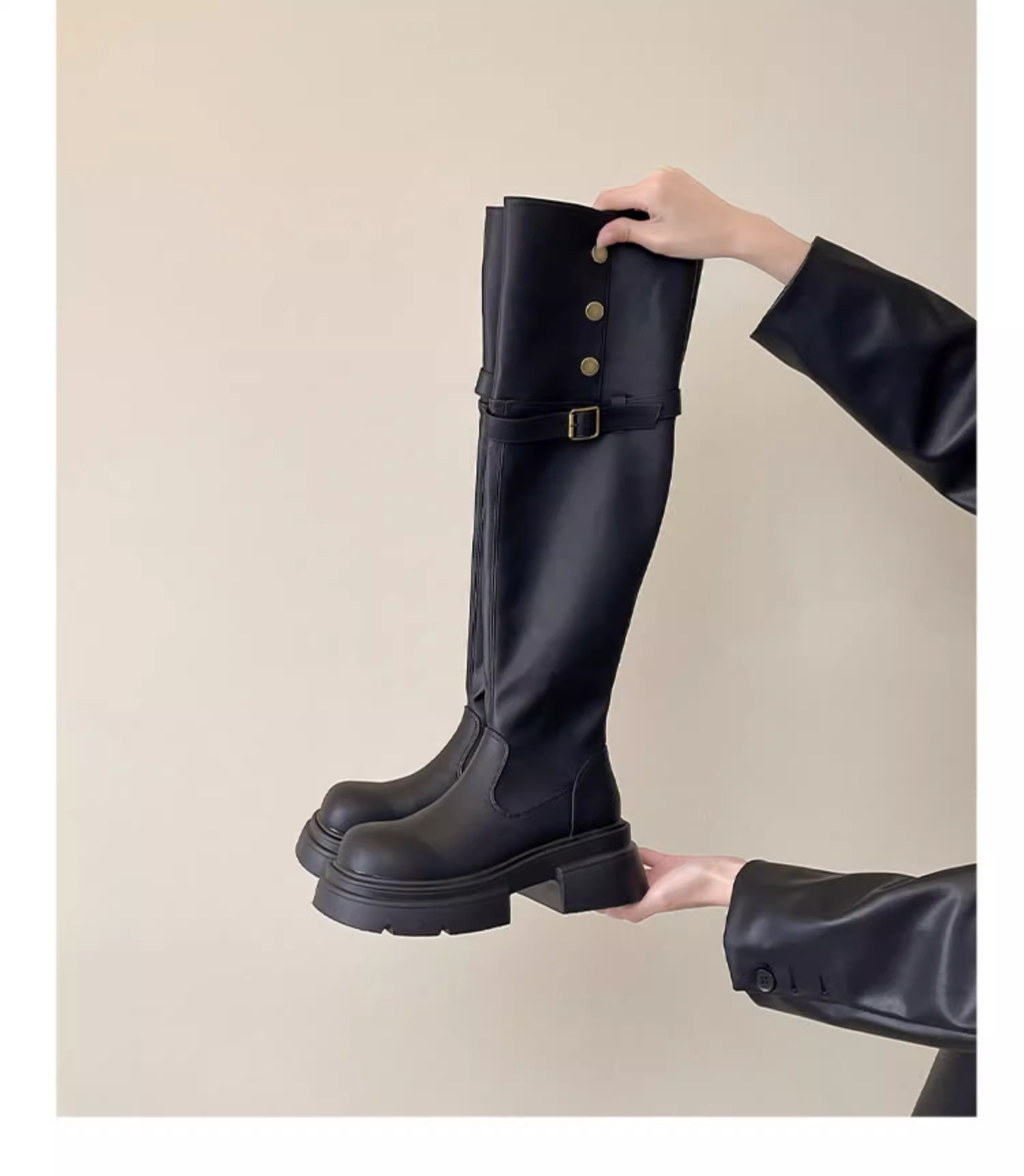 2 착용 두꺼운 밑창 부츠 여성의 2024 가을과 겨울 새로운 조커 두꺼운 발 뒤꿈치 기모 두꺼운 다리 부츠 기사 무릎 부츠스토어 가기