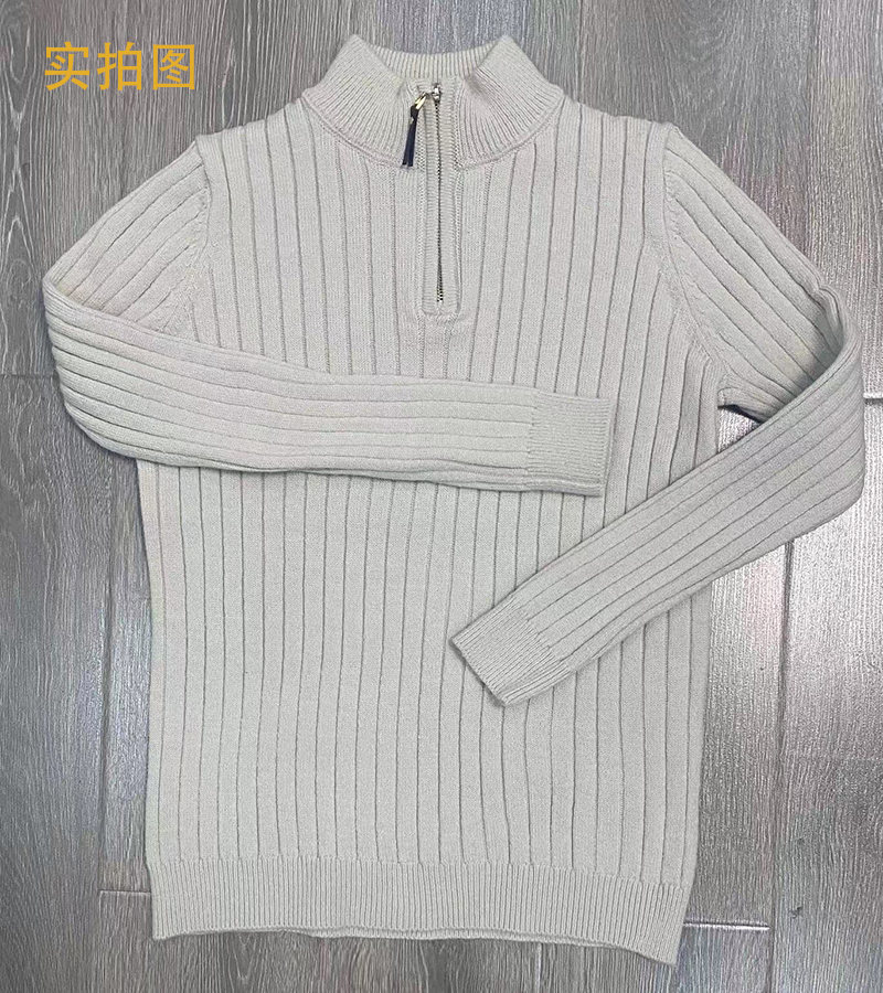대외 무역 국경 가을과 겨울 새로운 유럽과 미국 남성용 긴팔 세로 스트립 하프 하이 칼라 지퍼베이스 스웨터 남성용 스웨터