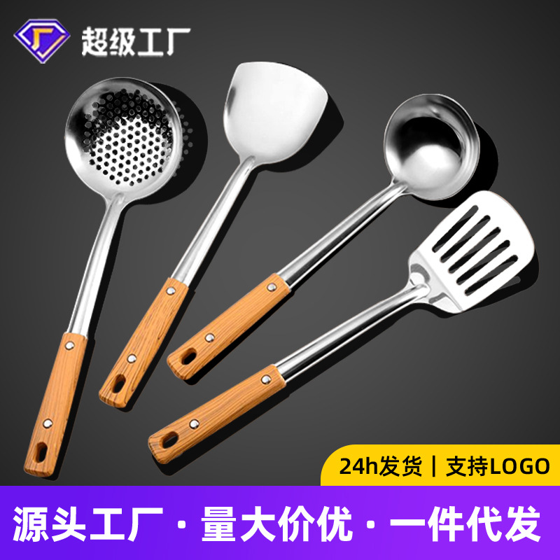 스테인레스 스틸 조리용 주걱, 주방용품, 수프 스푼, 나무 무늬 손잡이, 두꺼운 스푼과 주걱 요리용 주걱과 밥숟가락 주방세트