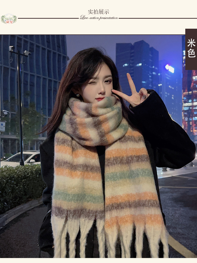 모헤어 컬러 매칭 스카프 여성용 스트라이프 레인보우 스카프 패션 모든 매치 따뜻한 숄 분위기 한국식 스카프스토어 가기