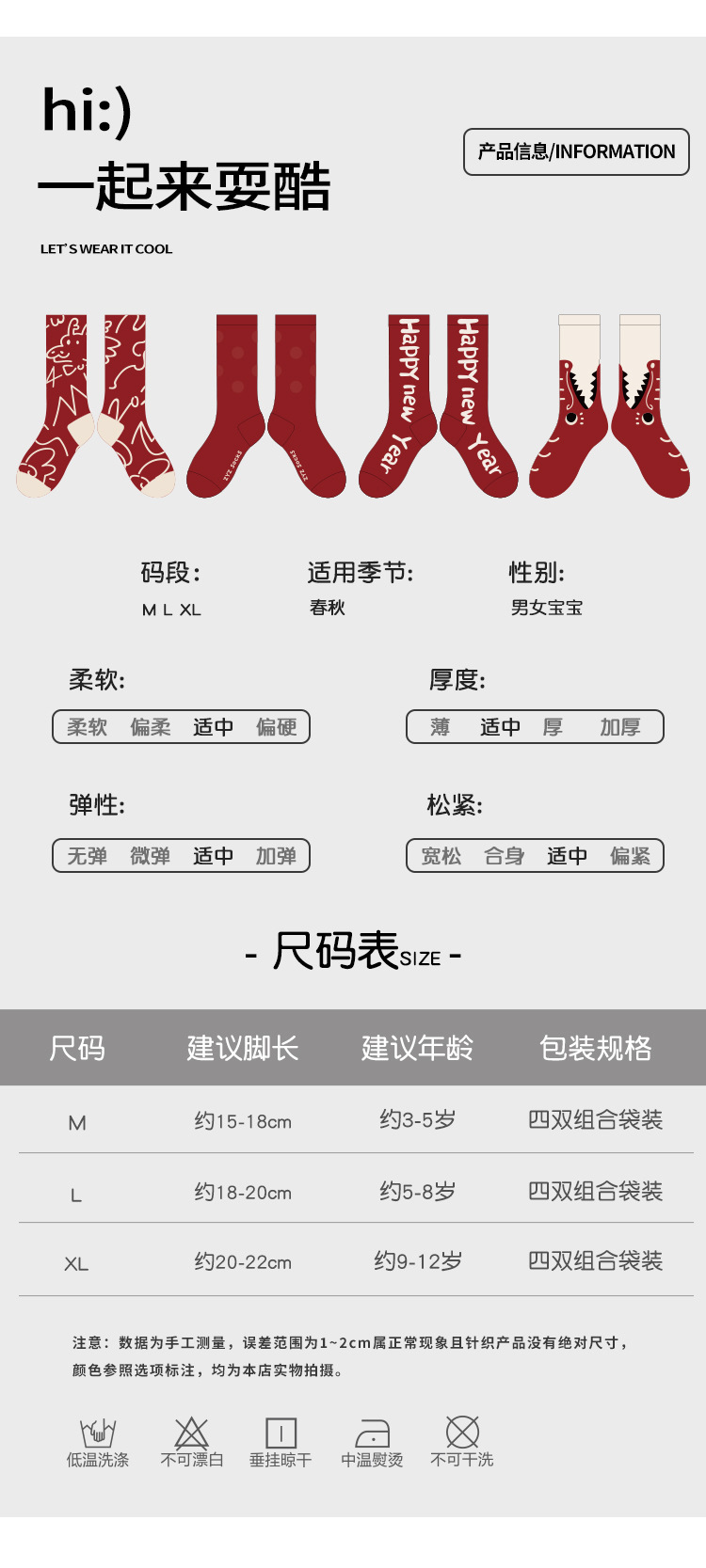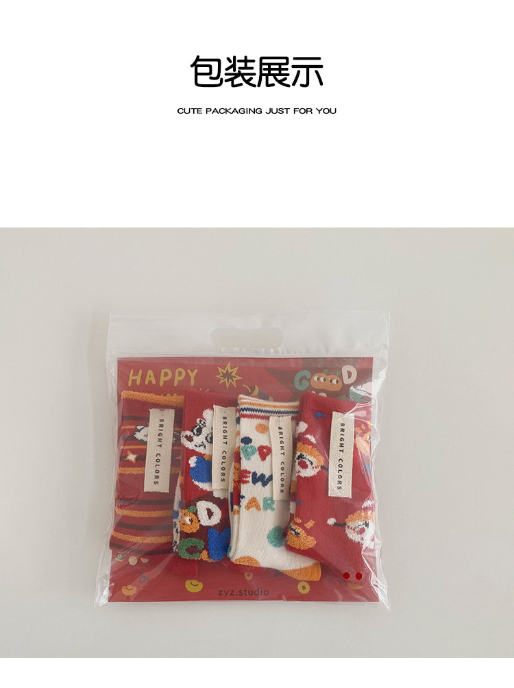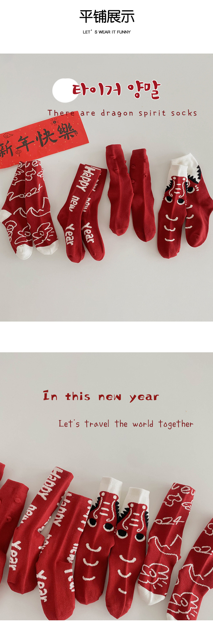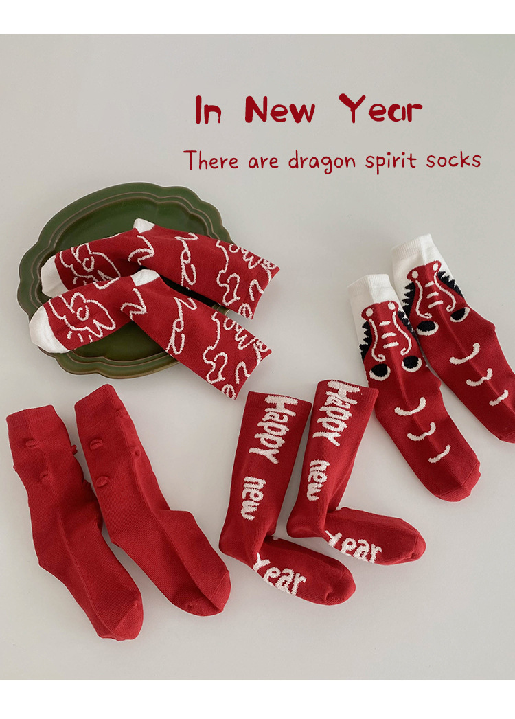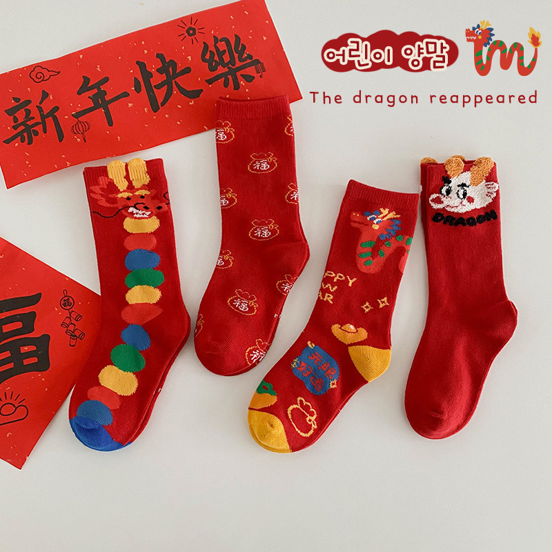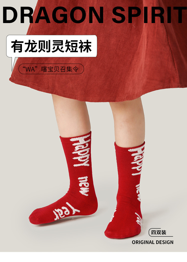 4 쌍-어린이 양말 도매 빨간 새해 양말 겨울 아기 미드 튜브 양말 면화 뼈없는 귀여운 소년과 소녀 양말스토어 가기