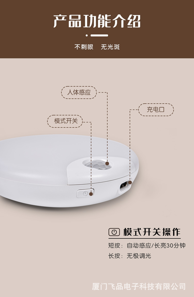 새로운 유도 램프 인체 유도 램프 지능형 침실 통로 화장실 재충전 가능한 LED 야간 조광으로 자기 흡입