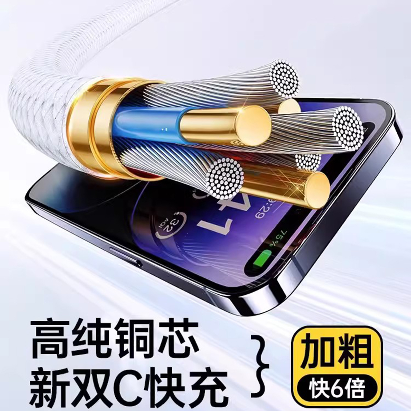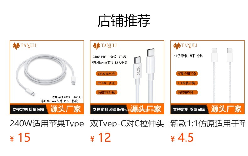 240W 초고속 충전 브레이드 네트워크 듀얼 타입-C 데이터 케이블, 애플, 화웨이, 샤오미 충전 케이블에 적합, 두꺼운 타입스토어 가기