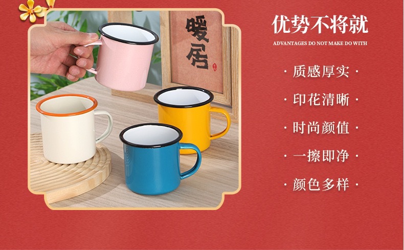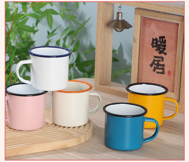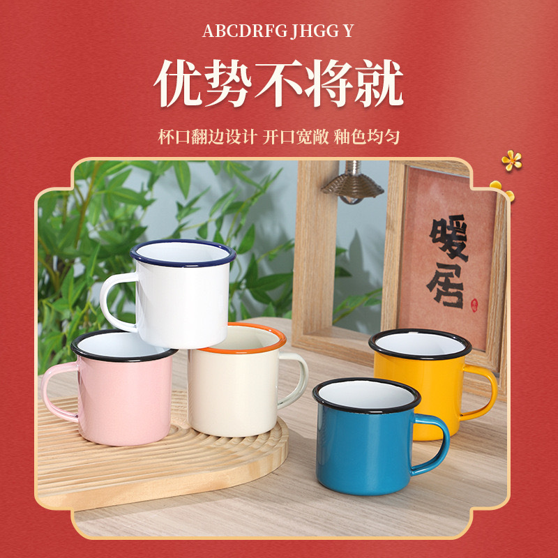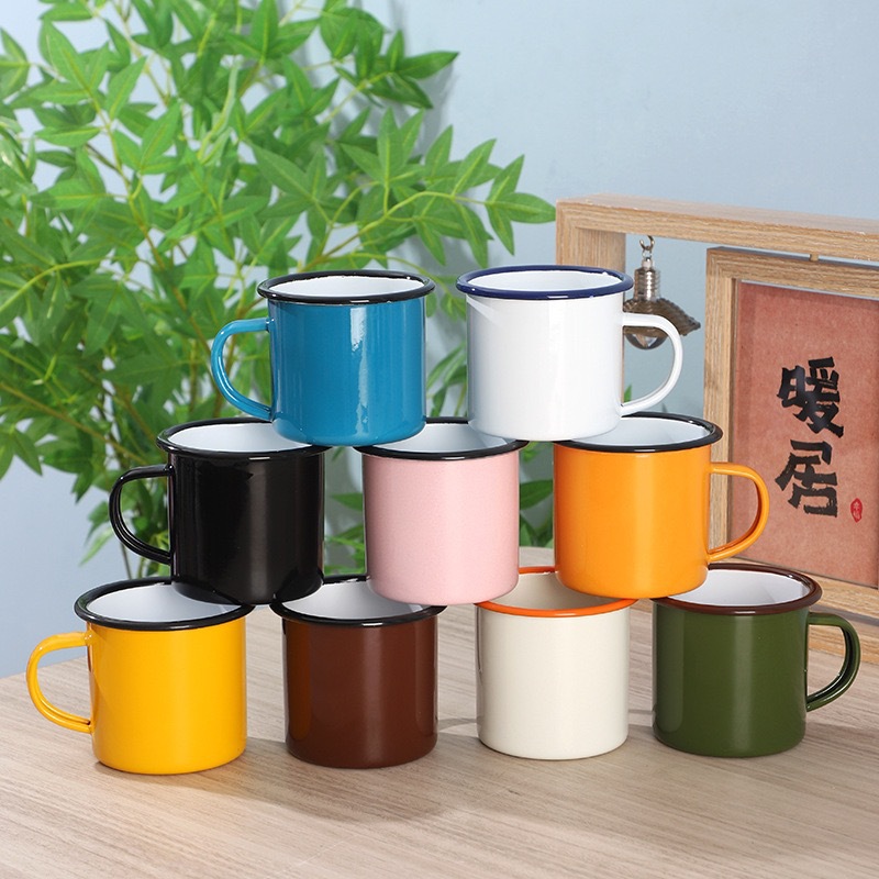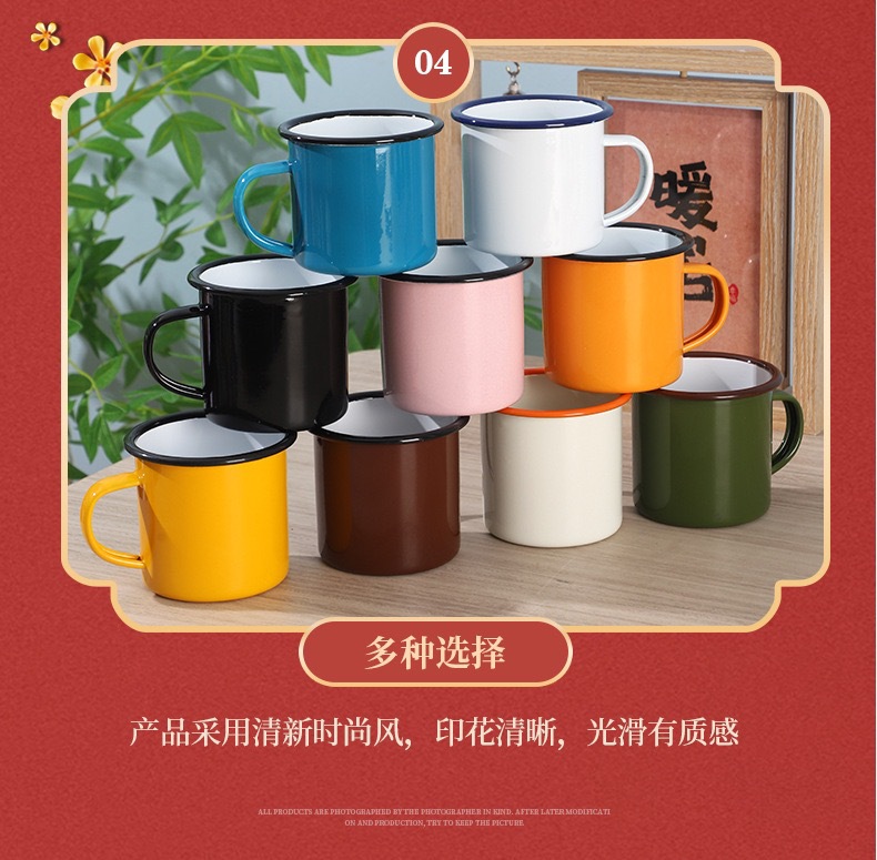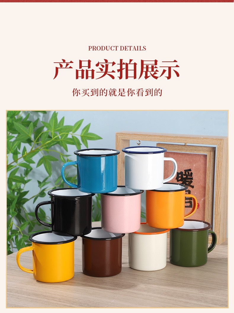 두꺼운 8cm 구식 에나멜 컵 차병 컬러 에나멜 컵 레트로 컬러 커피 컵 인쇄 로고스토어 가기
