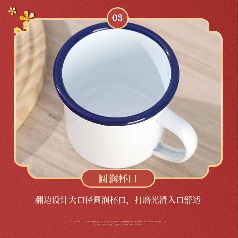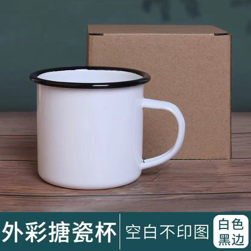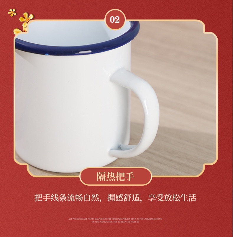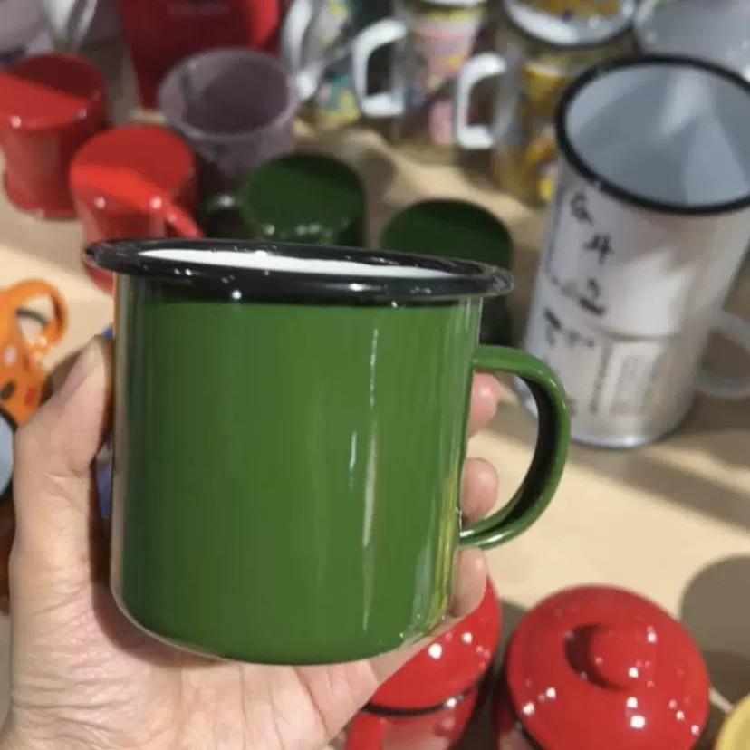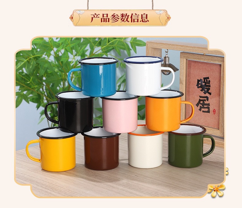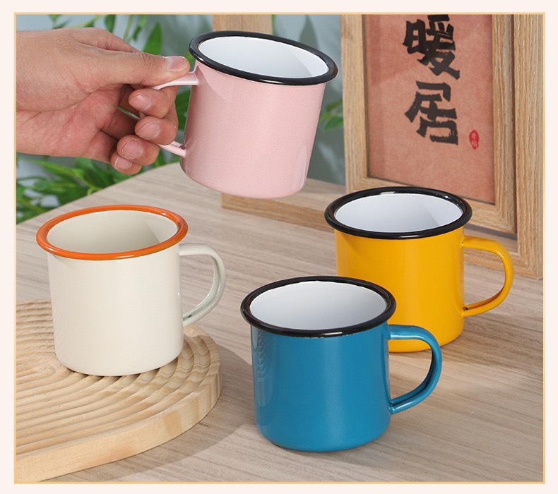 두꺼운 8cm 구식 에나멜 컵 차병 컬러 에나멜 컵 레트로 컬러 커피 컵 인쇄 로고스토어 가기