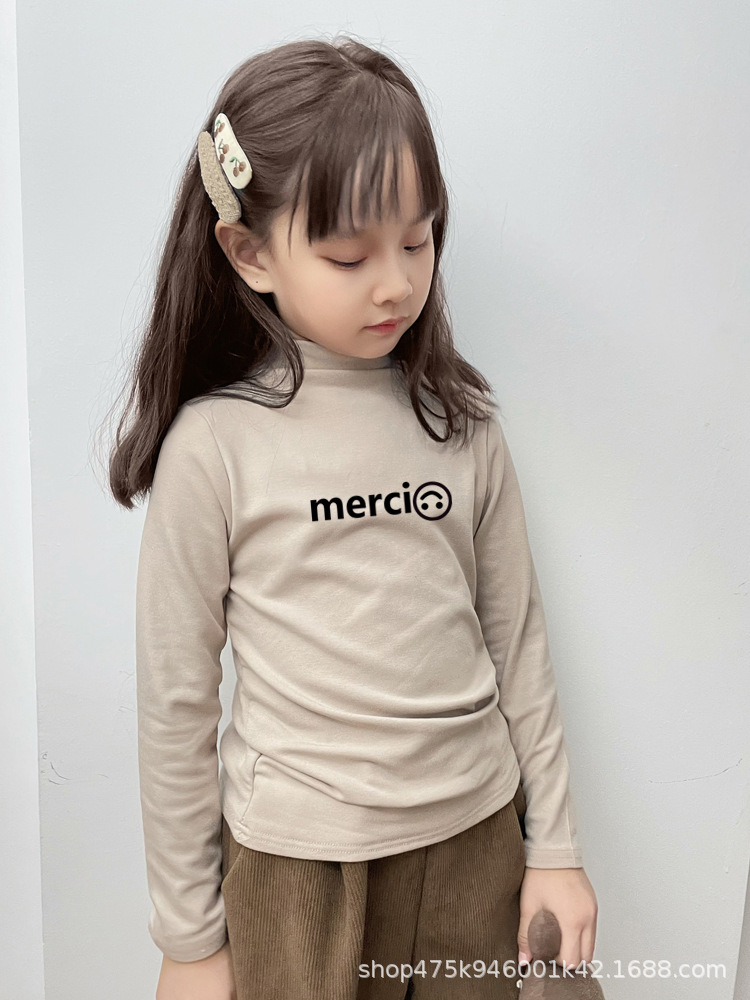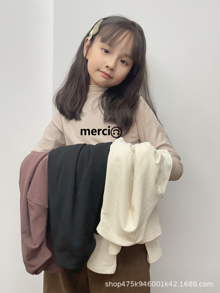 도매 라이브 품질 면 하프 하이 칼라 어린이 긴 소매베이스 셔츠 가을과 겨울 남성과 여성의 어린이 착용 따뜻한 티셔츠 탑