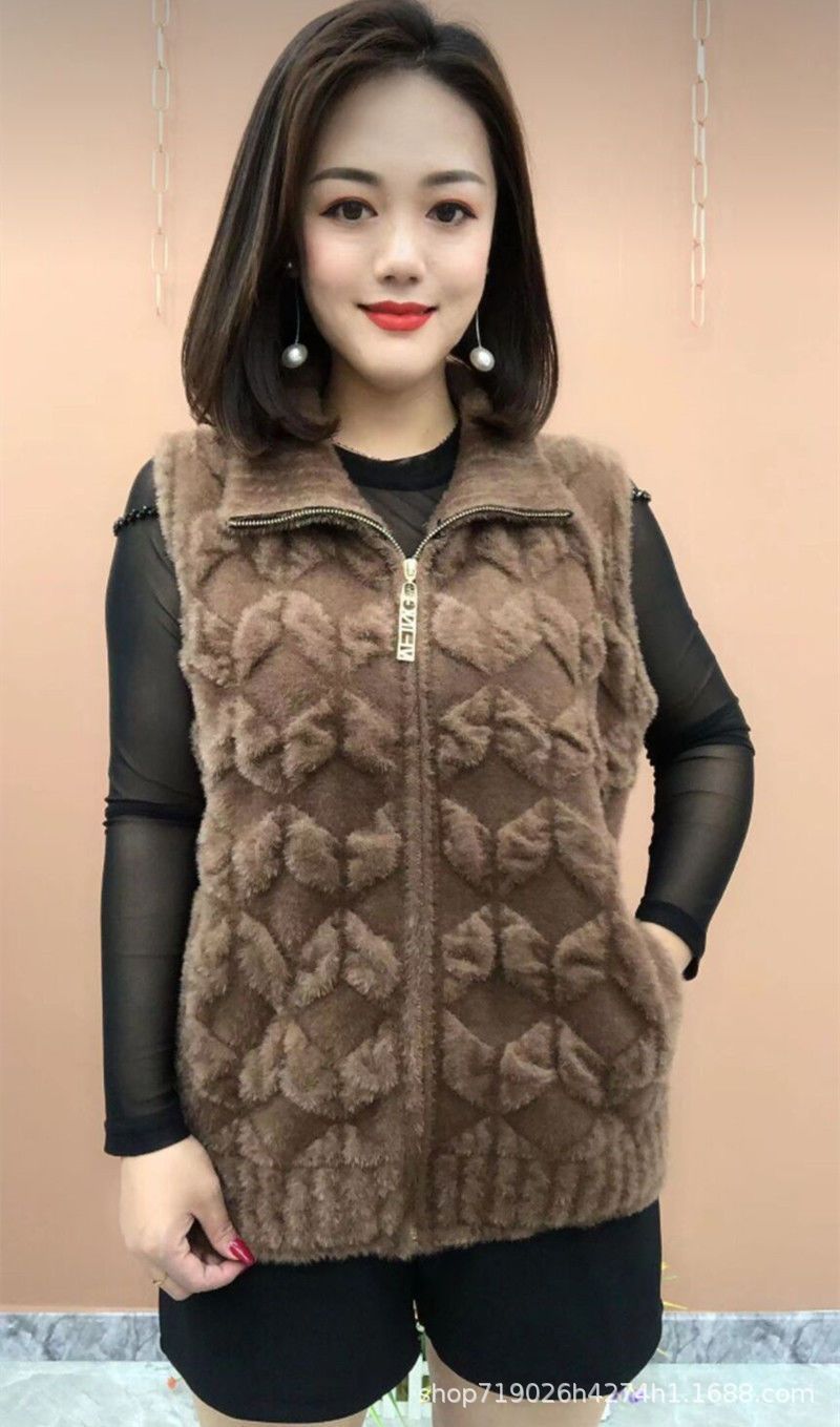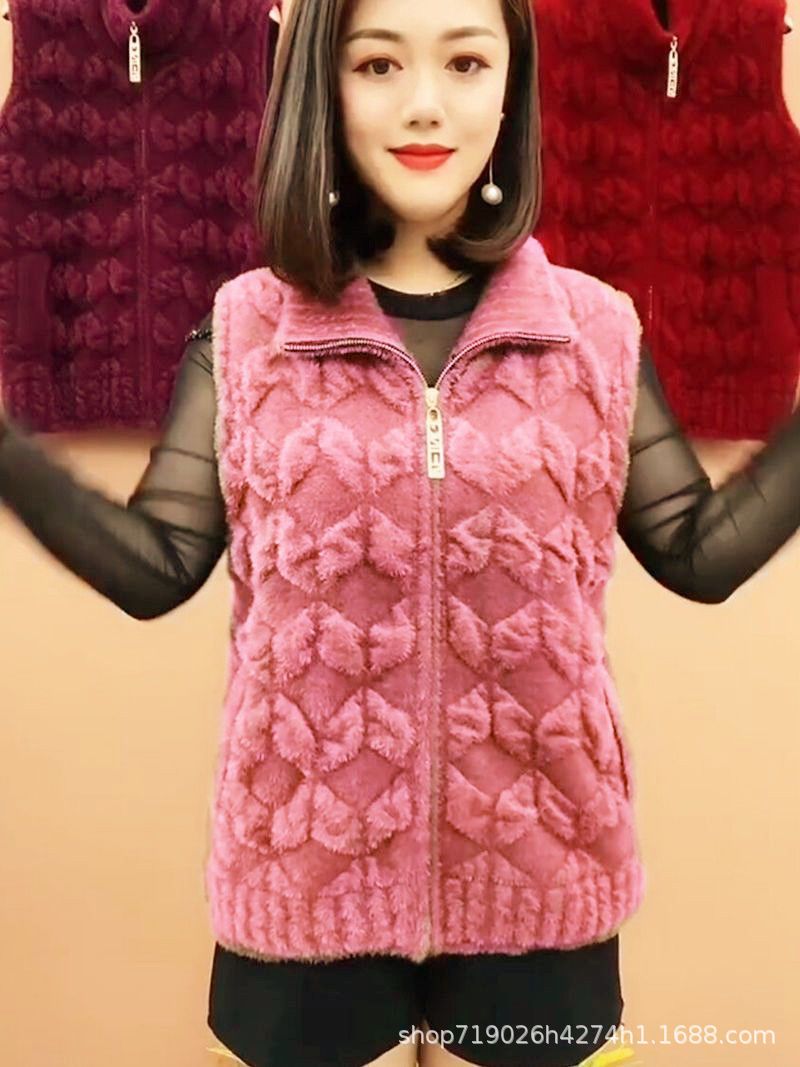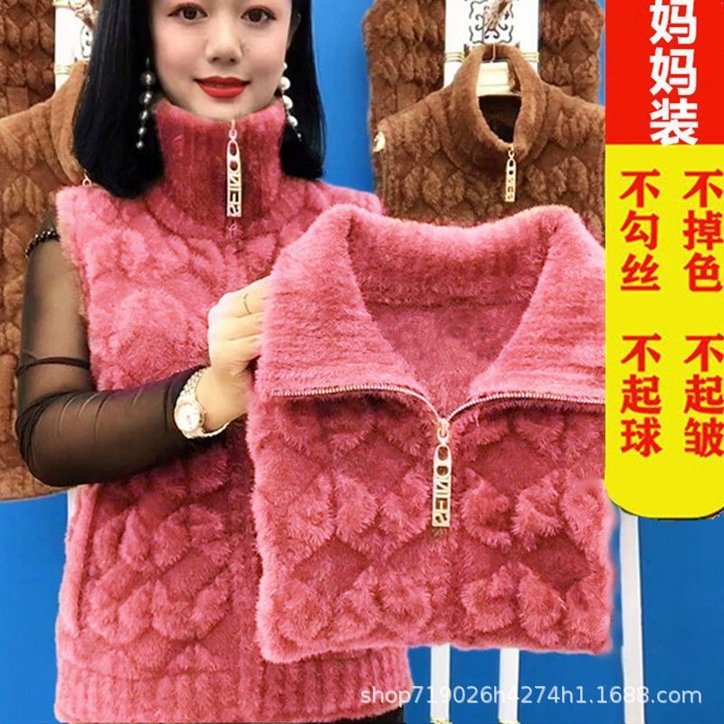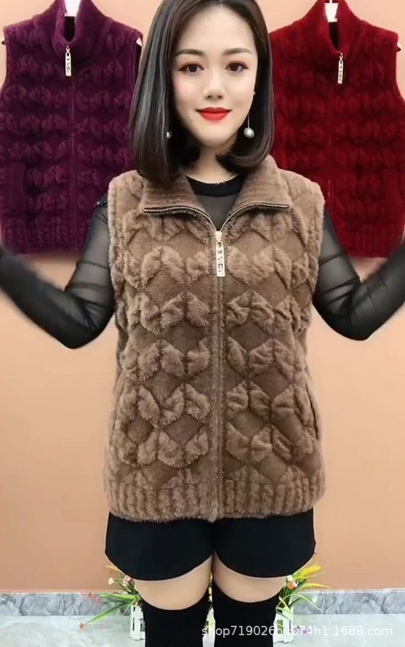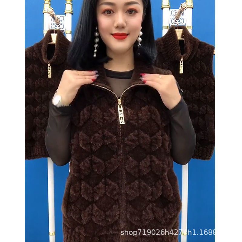 플란넬 어머니 겨울 따뜻한 코트 여성의 모조 물 가을 중년 및 노인 기모 두꺼운 서양 스타일 모든 일치 조끼