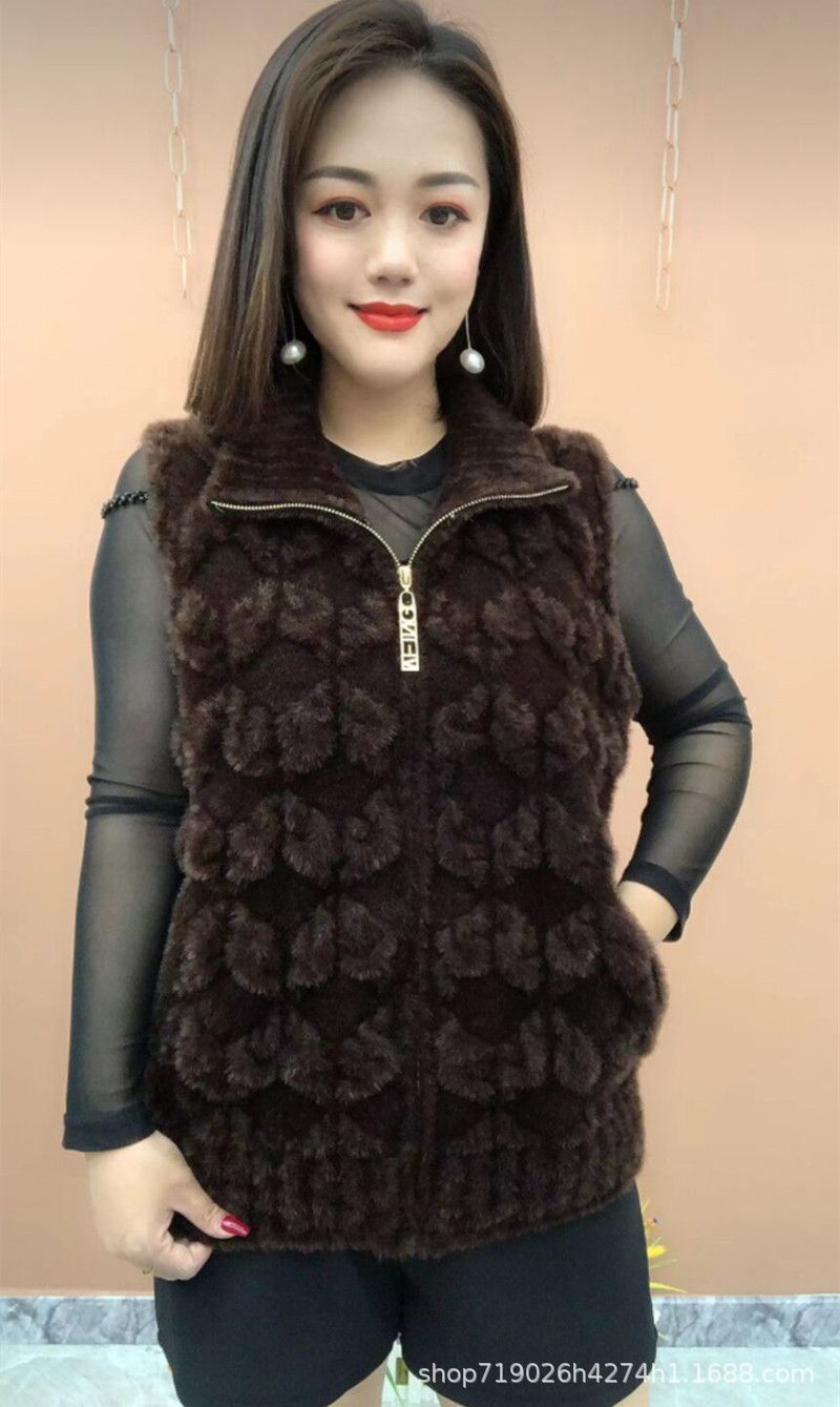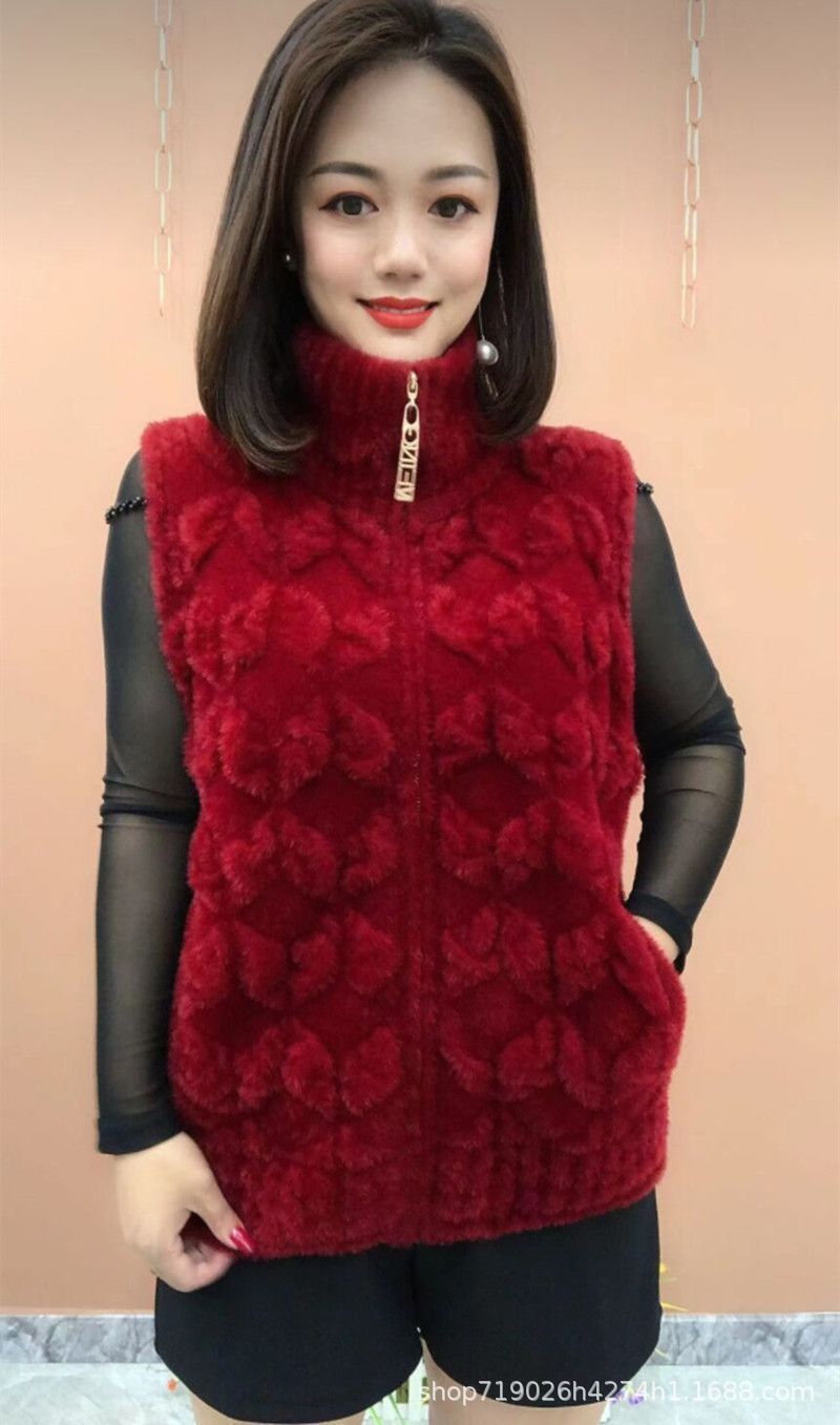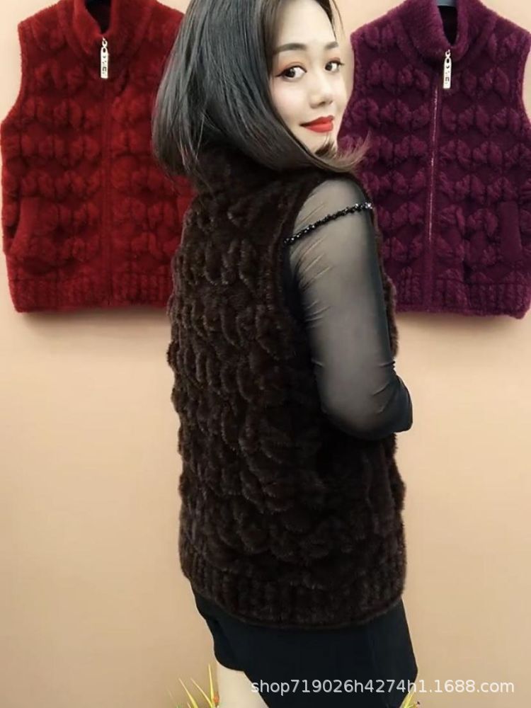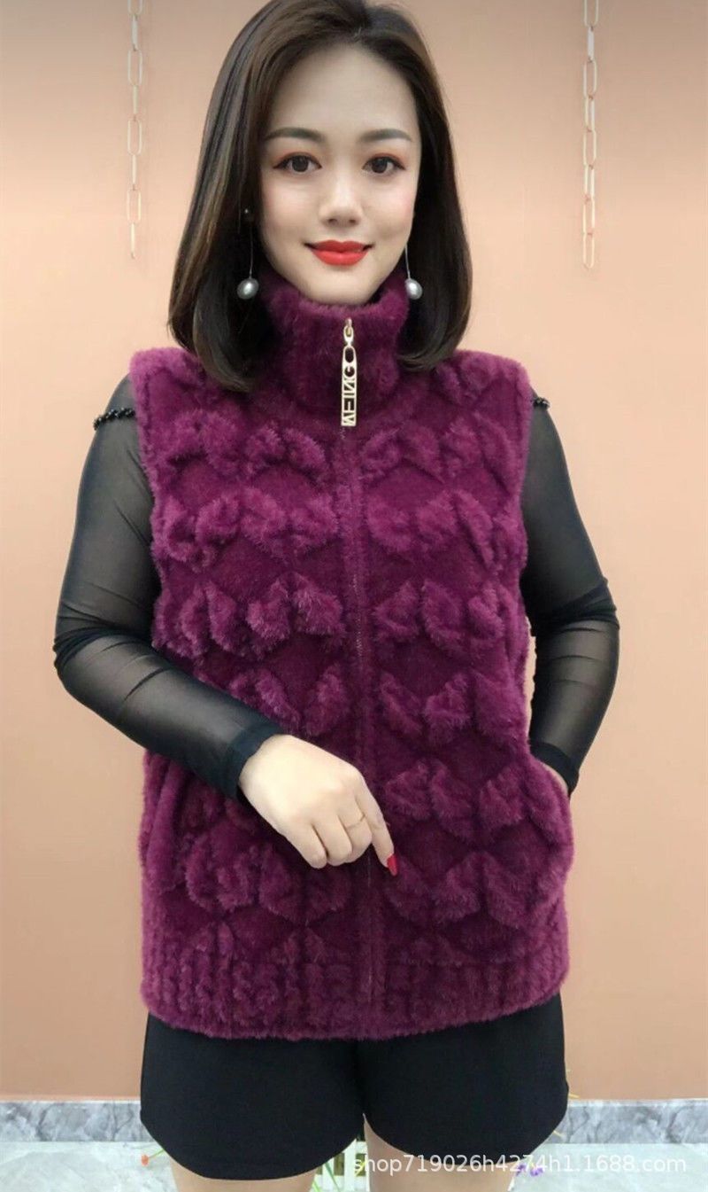 플란넬 어머니 겨울 따뜻한 코트 여성의 모조 물 가을 중년 및 노인 기모 두꺼운 서양 스타일 모든 일치 조끼