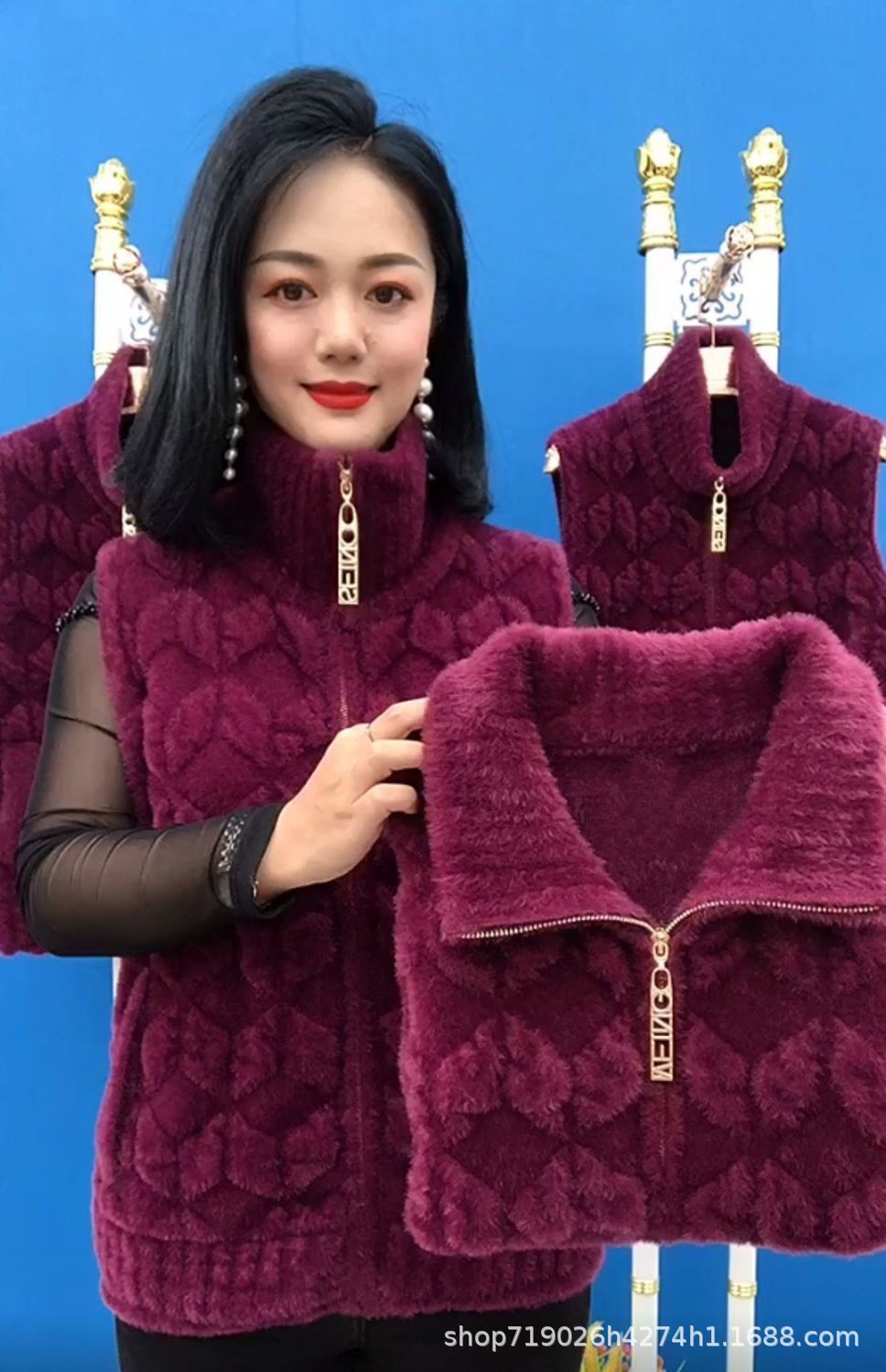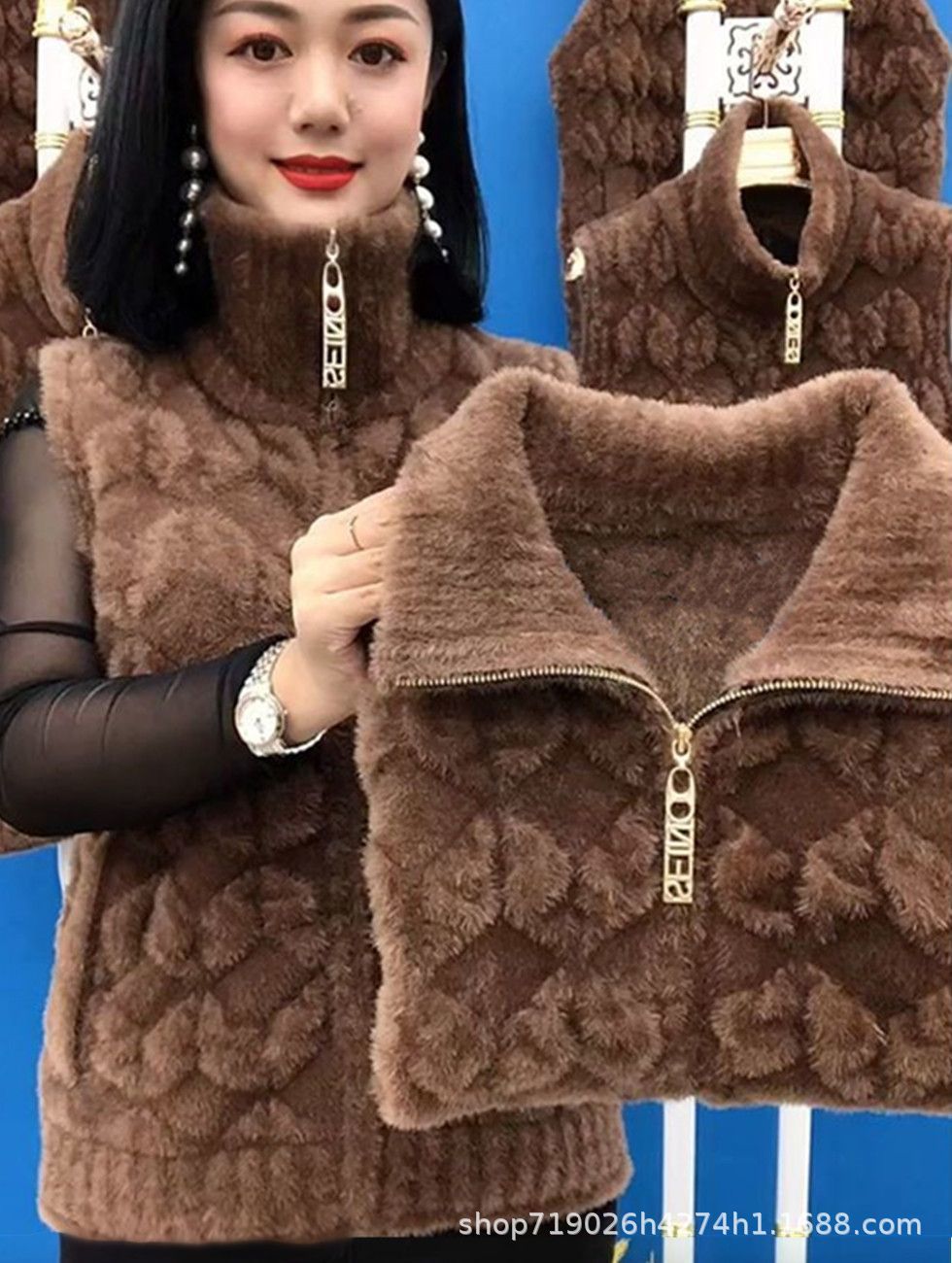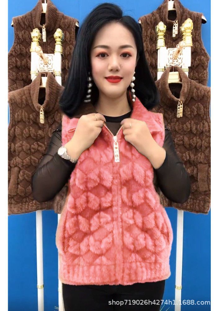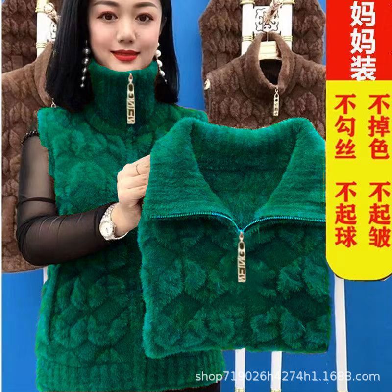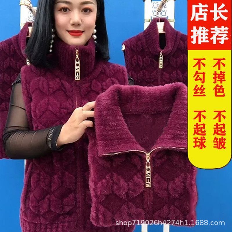 플란넬 어머니 겨울 따뜻한 코트 여성의 모조 물 가을 중년 및 노인 기모 두꺼운 서양 스타일 모든 일치 조끼스토어 가기