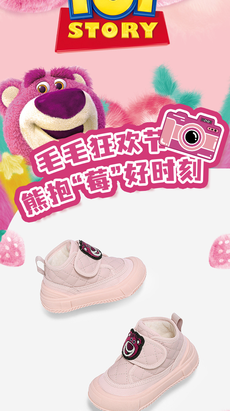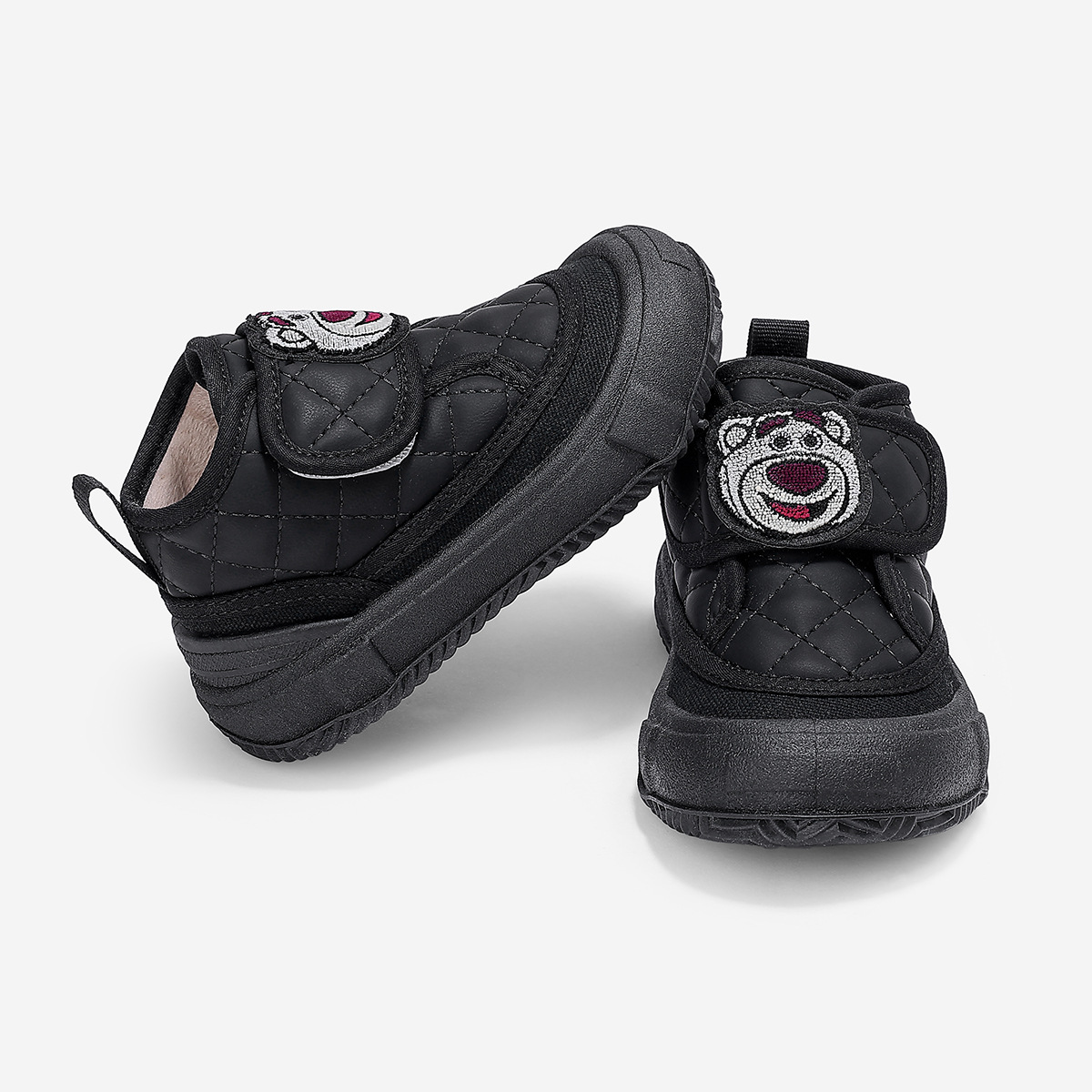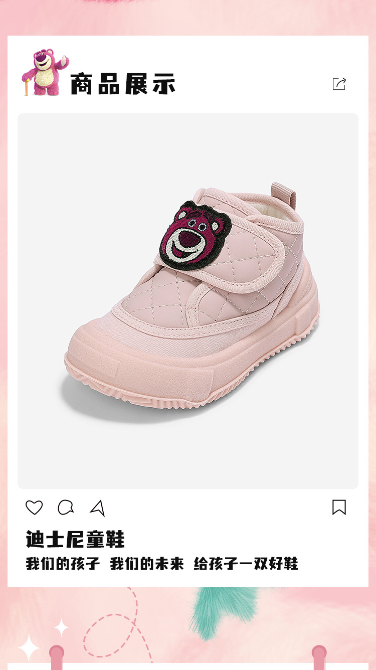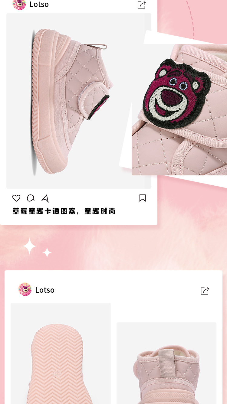 디즈니 2 면 아기 신발 2023 겨울 새로운 기모 딸기 곰 면화 신발 실내 부드러운 바닥 기모 유아 신발스토어 가기