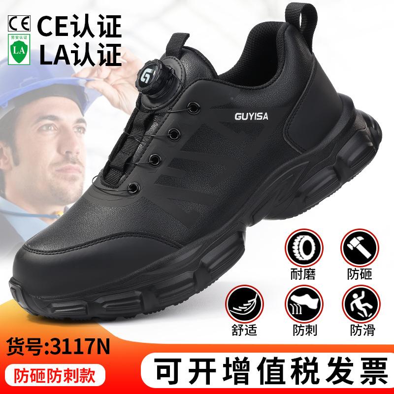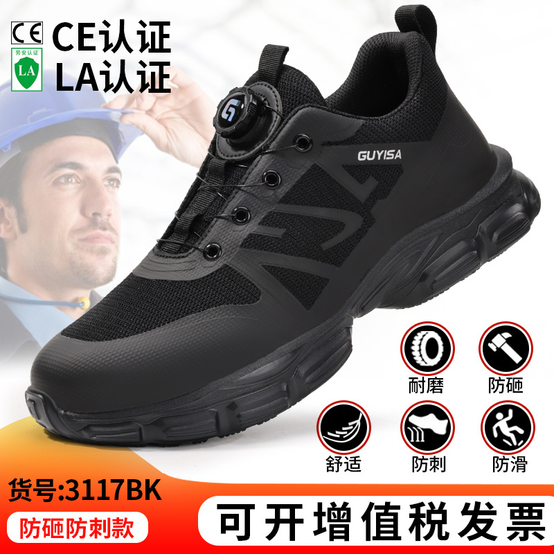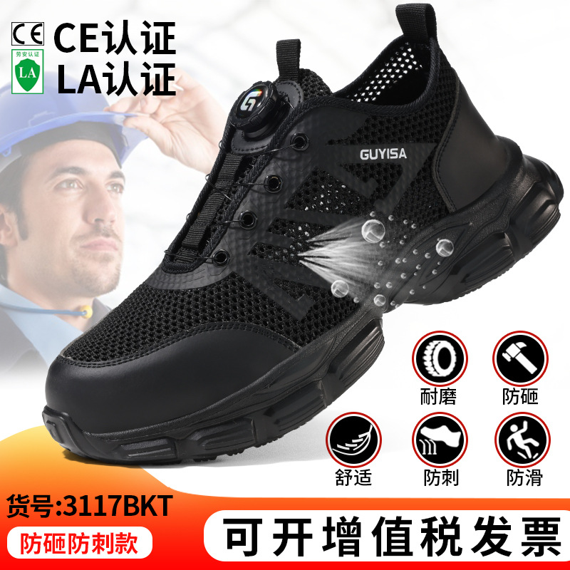 크로스보더 회전식 버튼 작업화, 봄여름 경량 안전화, 회전식 버튼으로 끈을 묶지 않아도 되는 남녀 작업 보호화