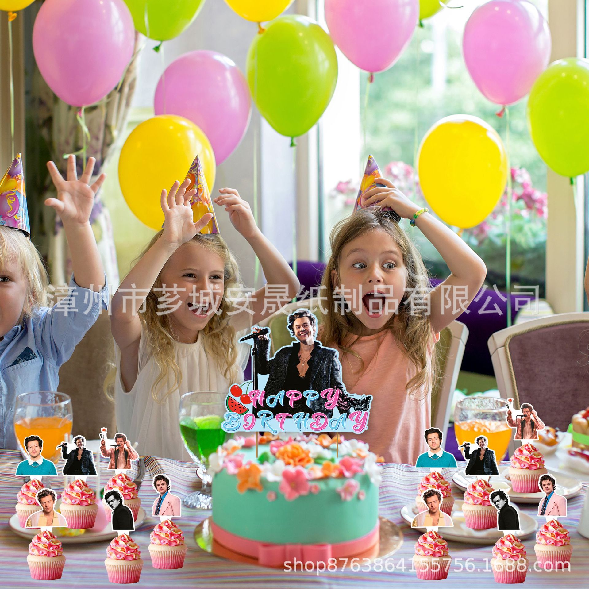 재고 해리스 타일 2 테마 생일 장면 배치 용품 파티 장식 케이크 카드와 깃발