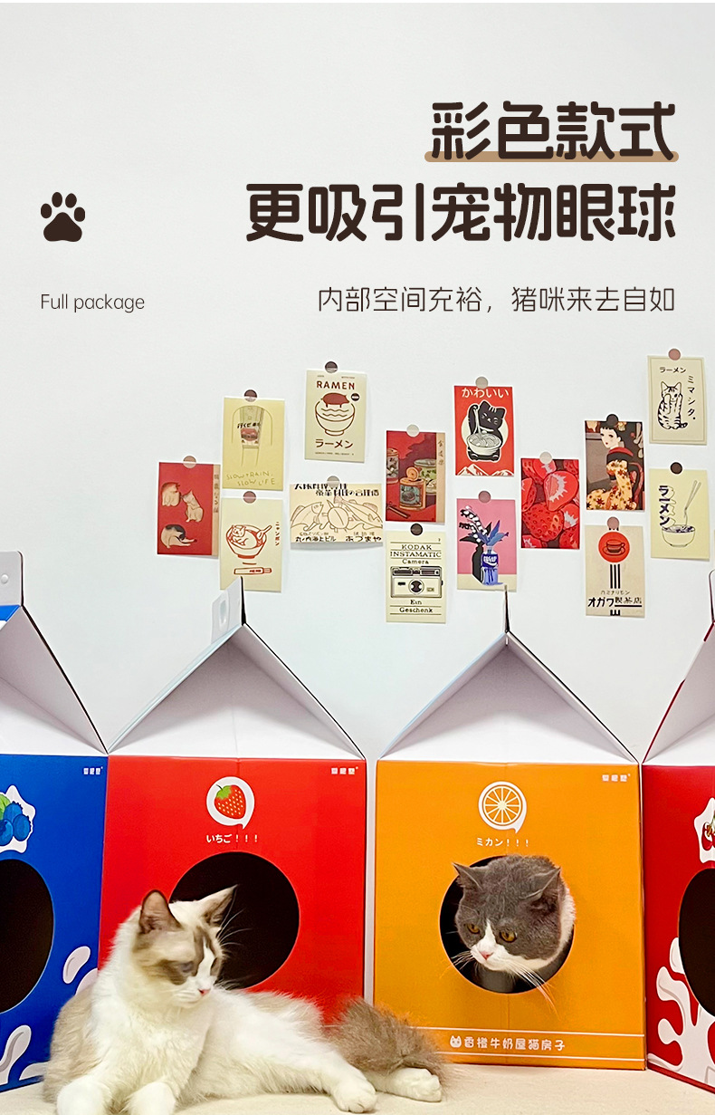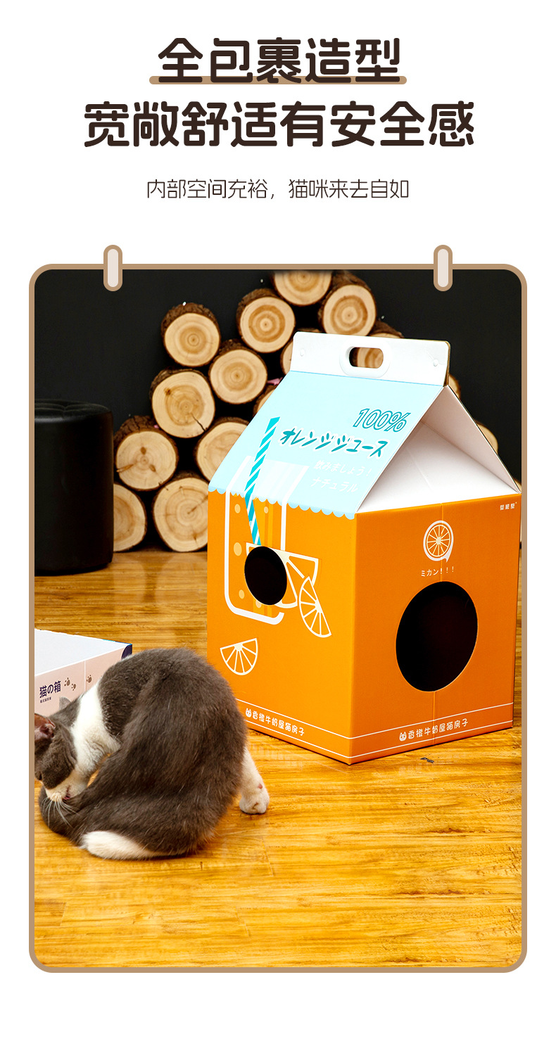 맞춤형 고양이 집 겸 고양이 스크래쳐 2-in-1 고양이 하우스 종이 상자 우유 상자 골판지 밀폐형 두꺼운 골판지스토어 가기