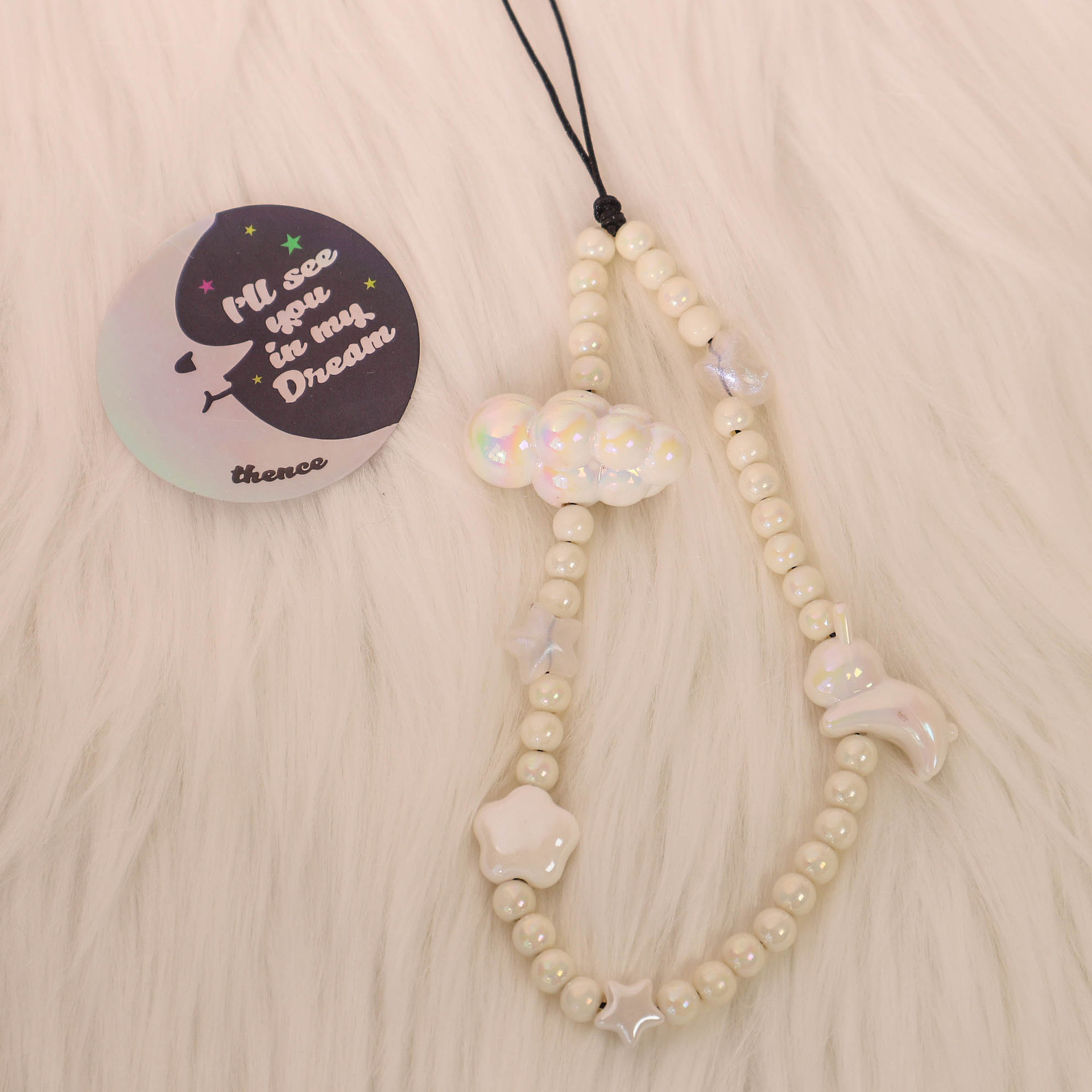 와우 원래 베이지 창이 문 휴대 전화 체인 틈새 휴대 전화 로프 화이트 토끼 문 ccd 카메라 체인