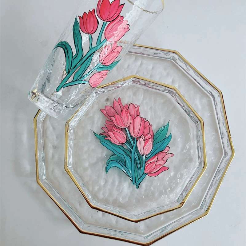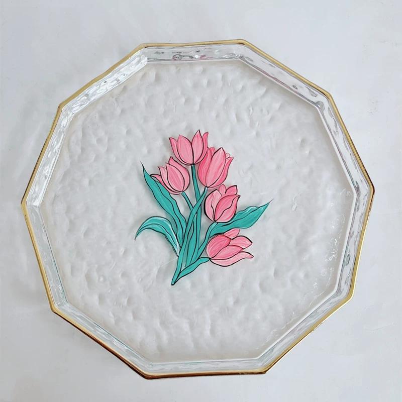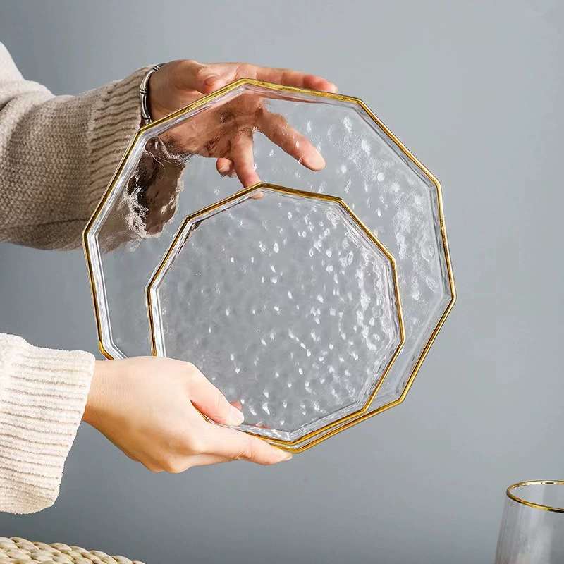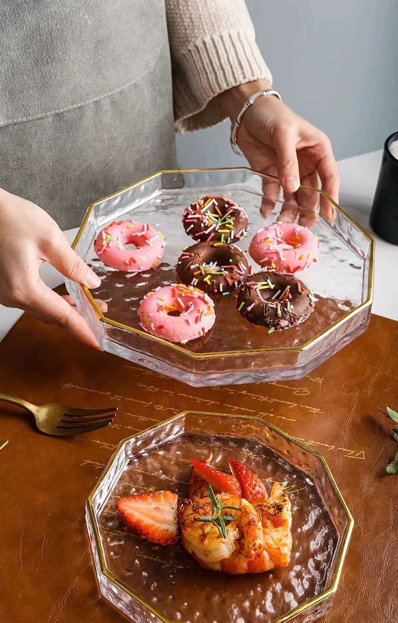 창의적이고 고급스러운 가정용 거실 과일 접시, 건과일 접시, 스낵 접시, 두꺼운 금테 유리 접시, 망치 무늬 수납 트레이스토어 가기