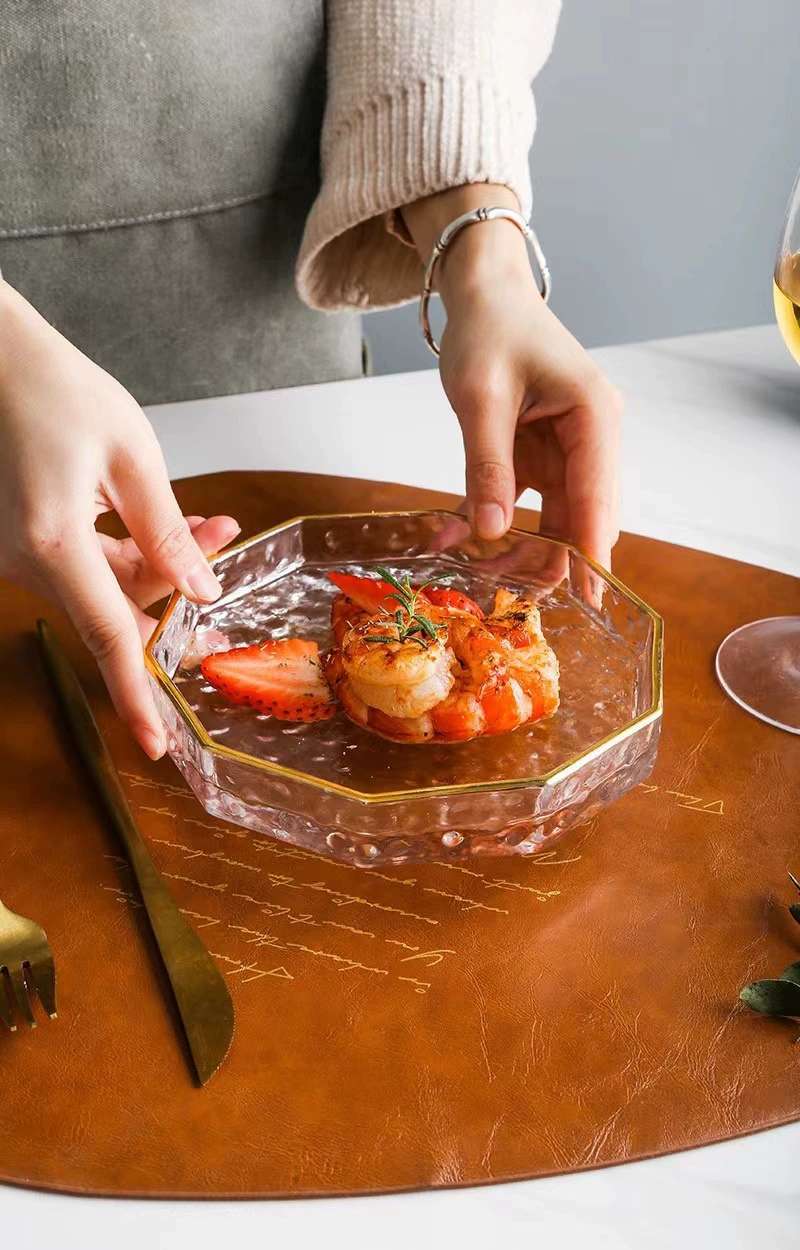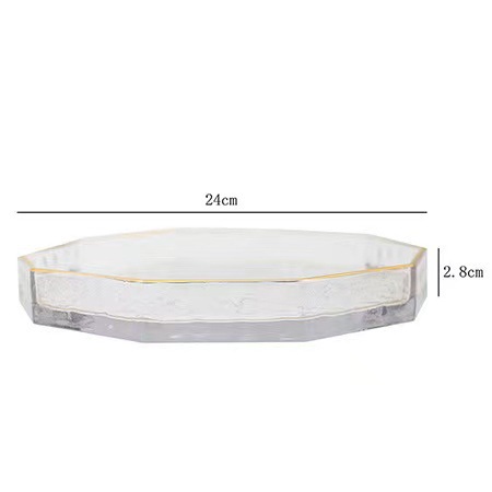 창의적이고 고급스러운 가정용 거실 과일 접시, 건과일 접시, 스낵 접시, 두꺼운 금테 유리 접시, 망치 무늬 수납 트레이