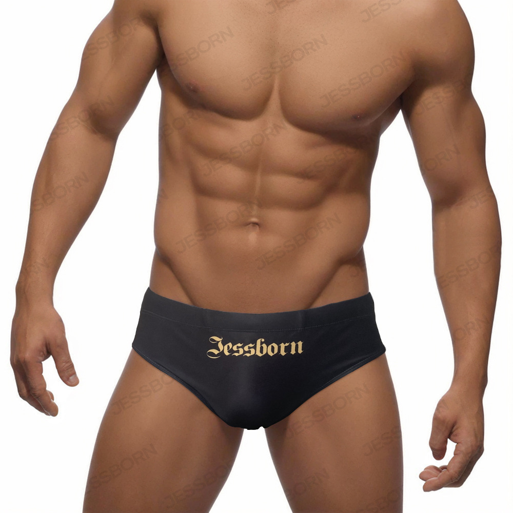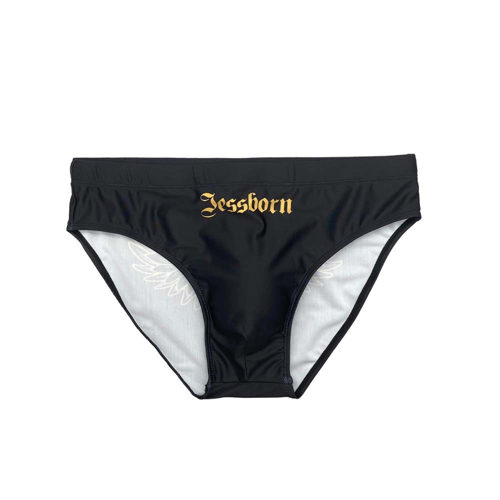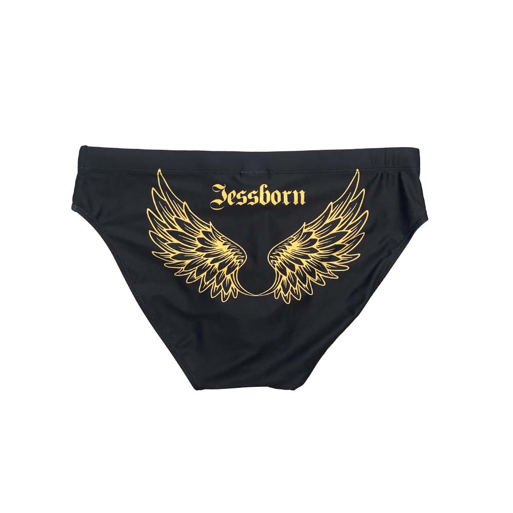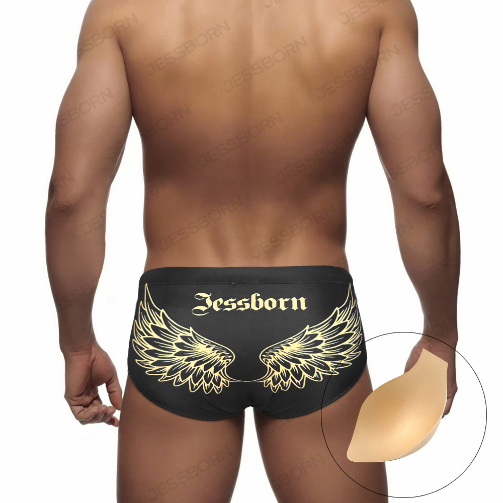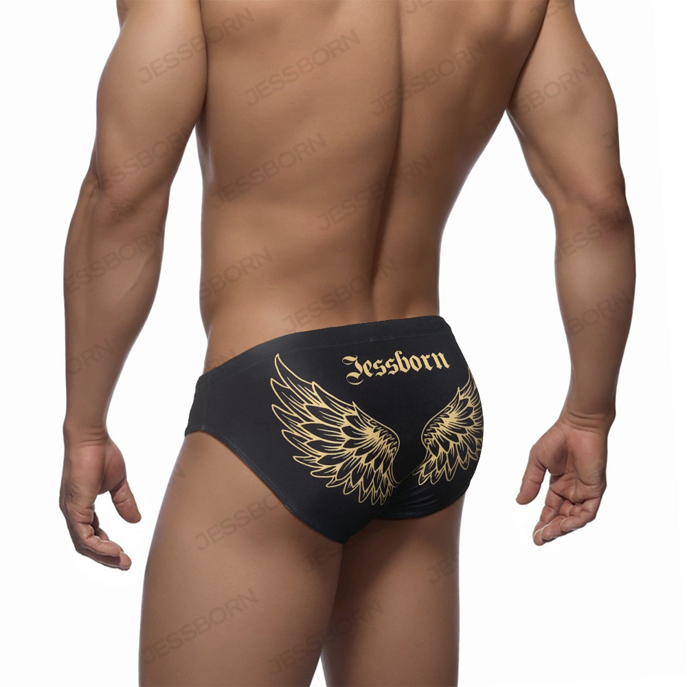 JESSBORN男士带罩杯三角泳裤哥特风翅膀印花温泉沙滩冲浪运动泳装