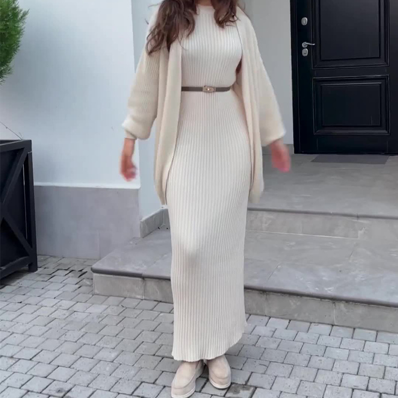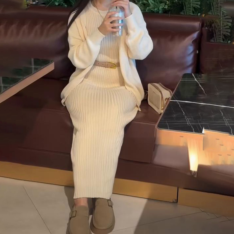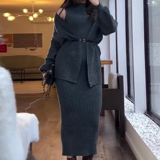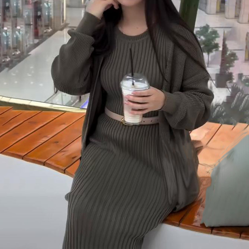 러시아 아마존 크로스 보더 무역 가을과 겨울 새로운 캐주얼 라운드 넥 슬림핏 게으른 스타일 카디건 니트 원피스스토어 가기