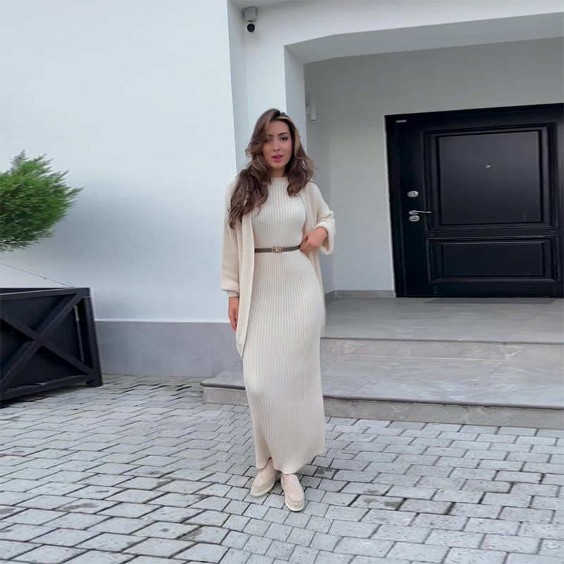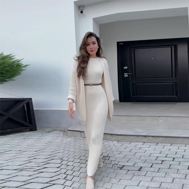 러시아 아마존 크로스 보더 무역 가을과 겨울 새로운 캐주얼 라운드 넥 슬림핏 게으른 스타일 카디건 니트 원피스