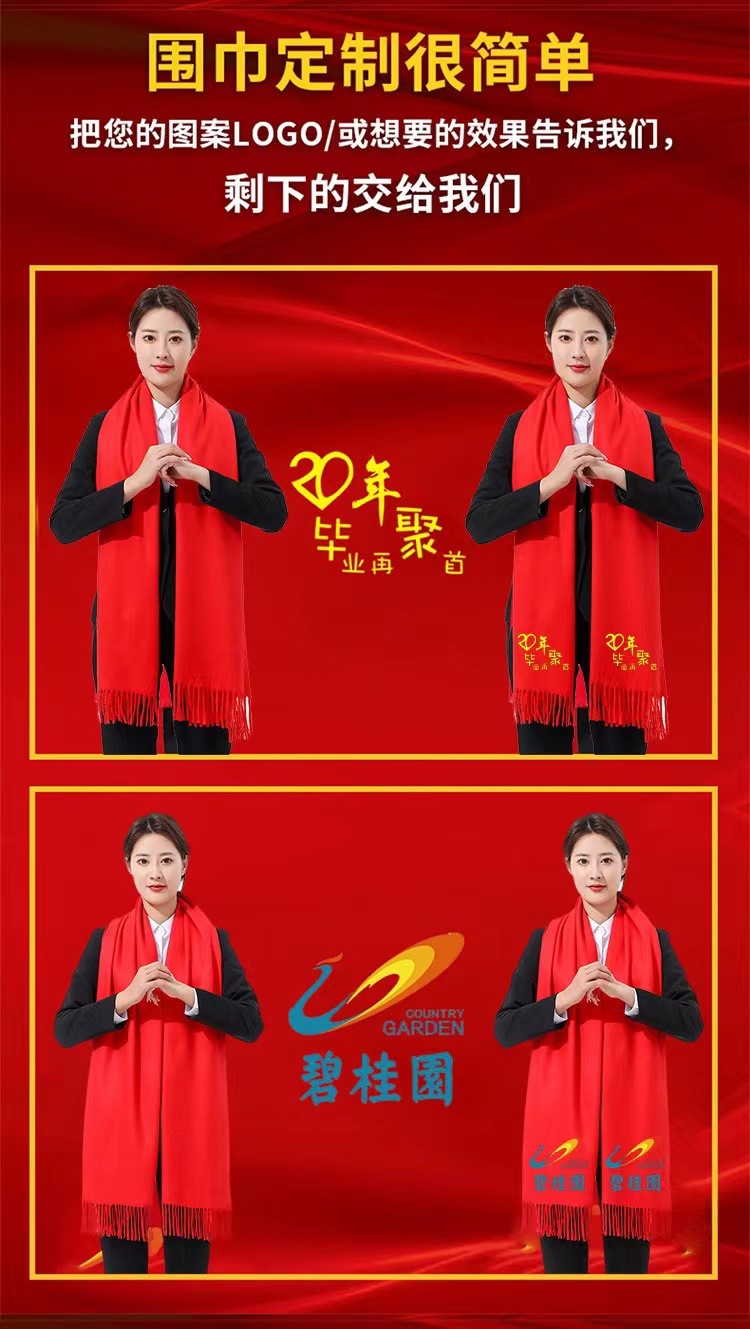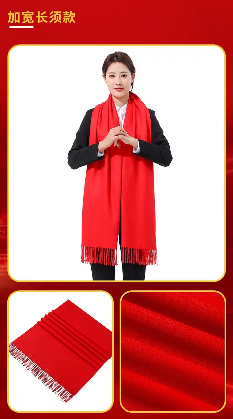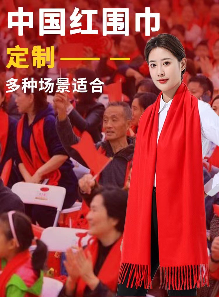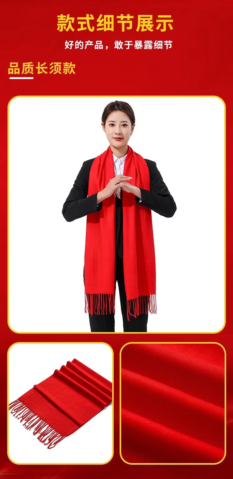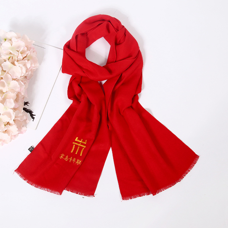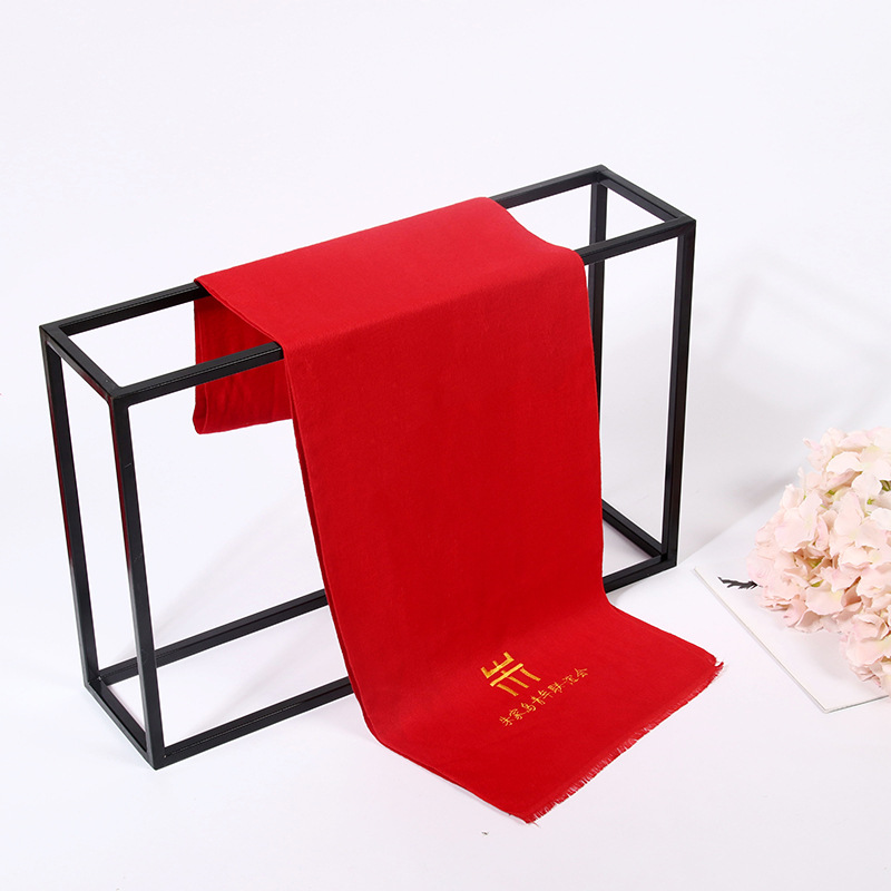 레드 스카프 맞춤 로고 자수 회사 오프닝 파티 축하 중국 레드 연례 회의 활동 스카프 캐시미어 도매스토어 가기