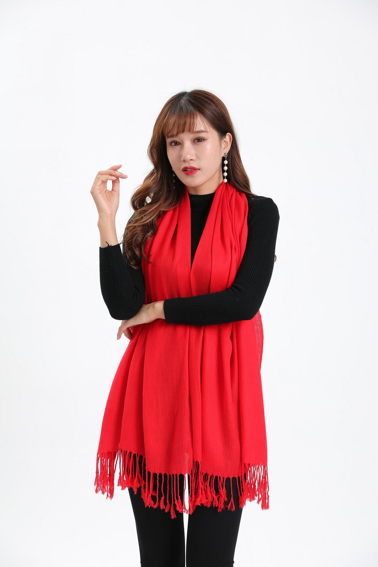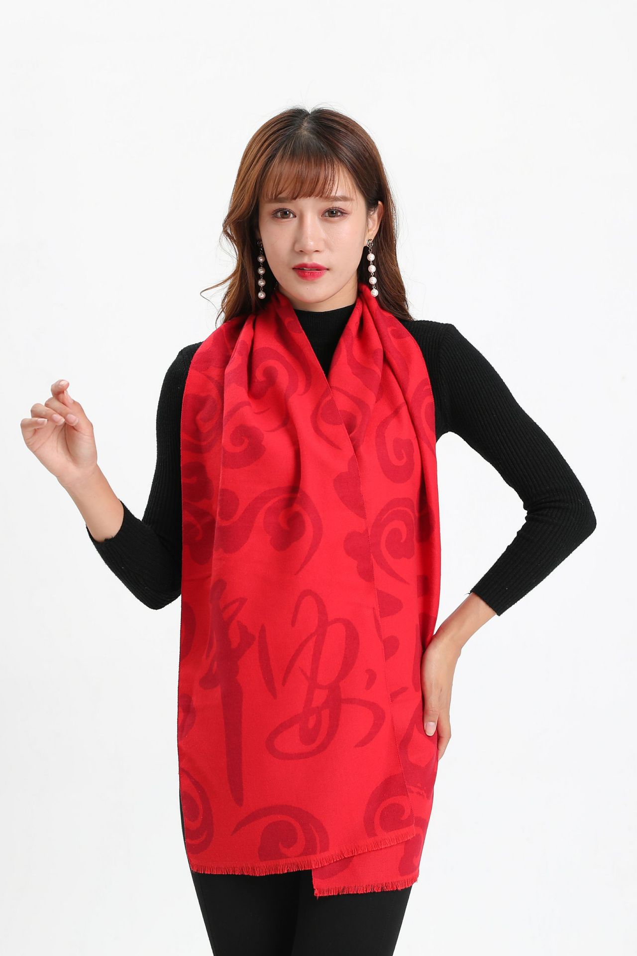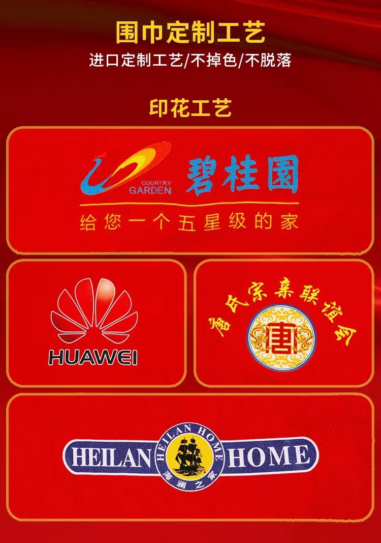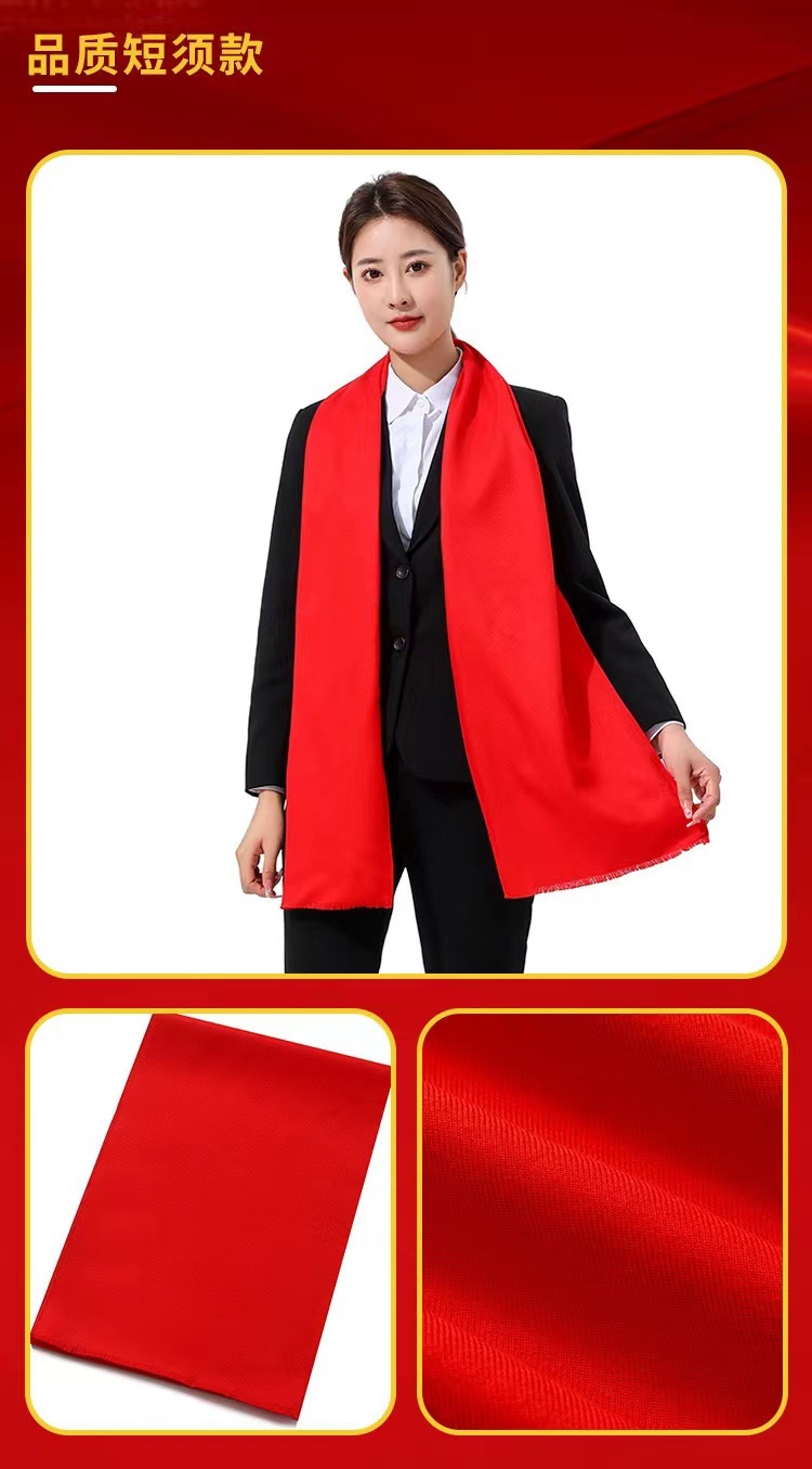 레드 스카프 맞춤 로고 자수 회사 오프닝 파티 축하 중국 레드 연례 회의 활동 스카프 캐시미어 도매스토어 가기