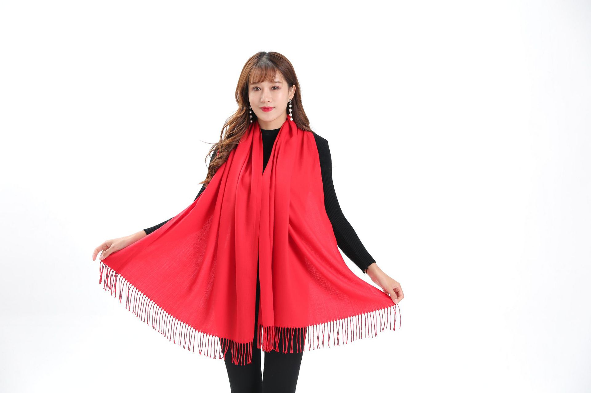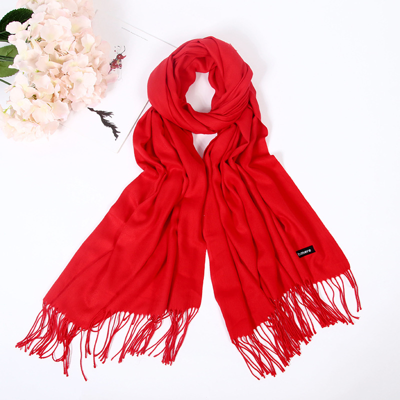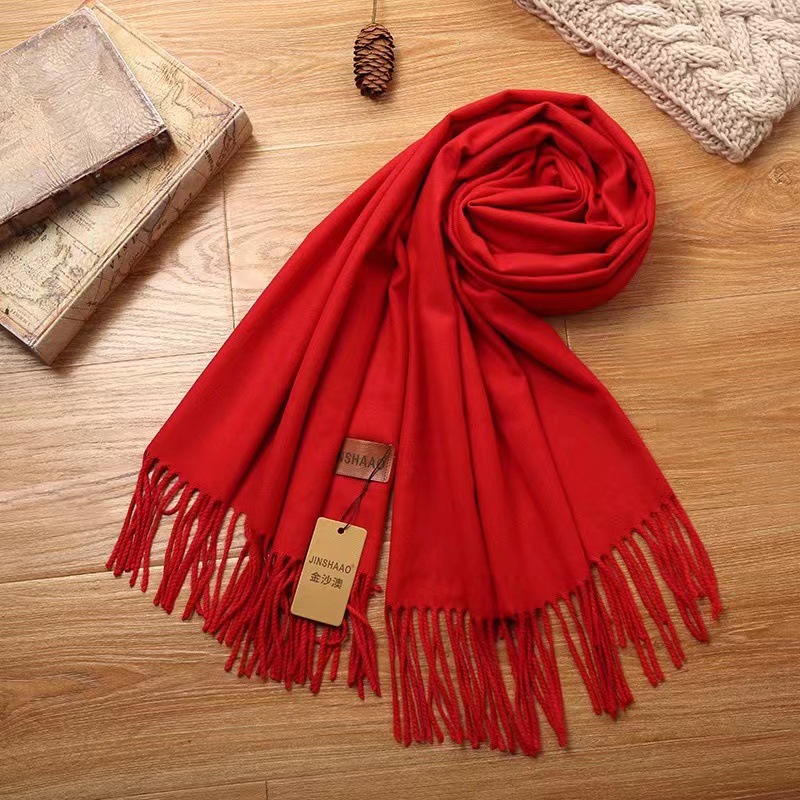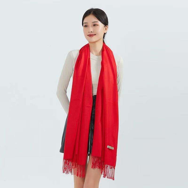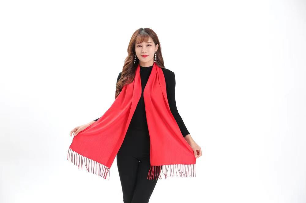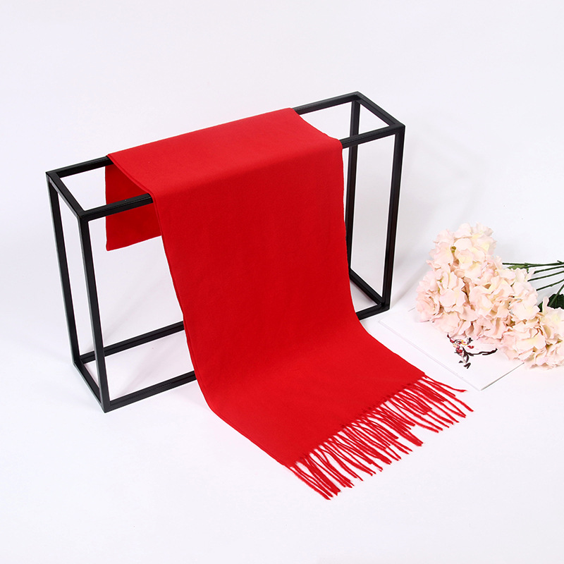 레드 스카프 맞춤 로고 자수 회사 오프닝 파티 축하 중국 레드 연례 회의 활동 스카프 캐시미어 도매