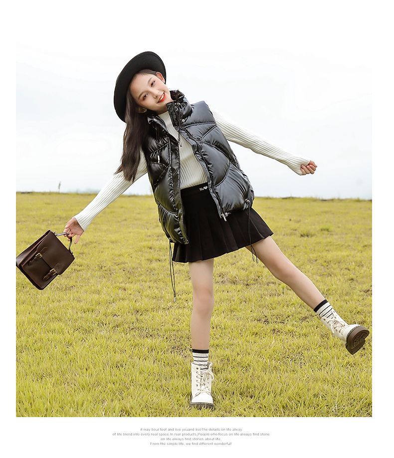 여아 조끼 가을과 겨울 새로운 스타일 2023 큰 어린이 조끼 세련된 겉옷을 입고 따뜻한 다운 면 조끼 올매치 트렌디