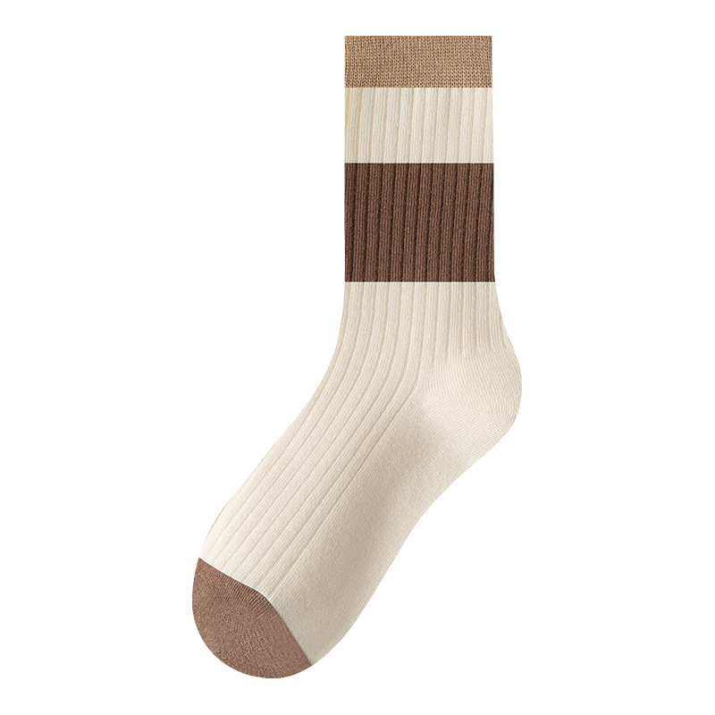 Maillard 색상 여성 양말 스트라이프 문자 중간 길이 양말 다크 브라운 스택 양말 Zhuji 양말 미국 스타킹스토어 가기