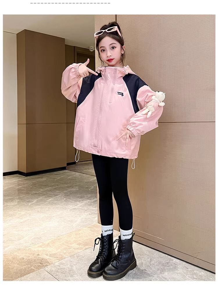 여아 재킷 2024 새로운 한국식 봄, 가을 중대형 아동용 인기 더블 지퍼 스타일 여아 아우터 재킷스토어 가기