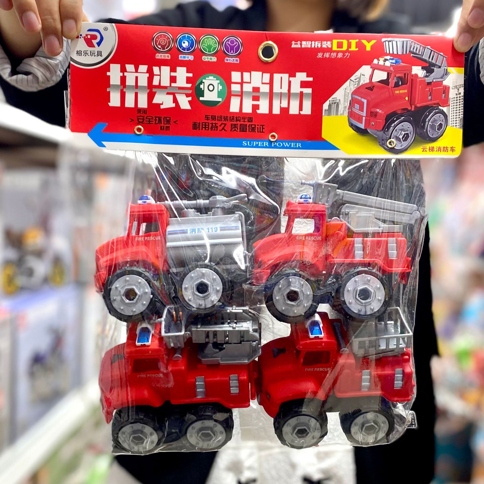 분해 및 조립 엔지니어링 차량 모델 DIY 탈착식 조립 너트 슬라이딩 굴착기 소방차 놀이 홈 교육 완구스토어 가기