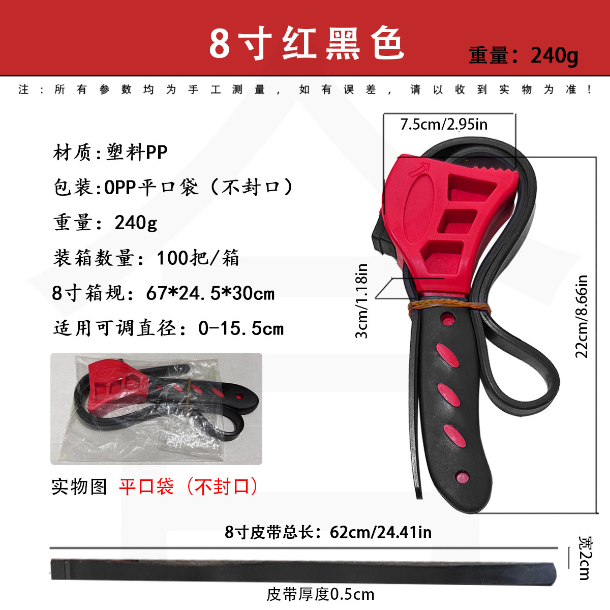 6 인치 8 인치 다기능 벨트 렌치 플라스틱 조절 가능한 병따개 자동 수리 필터 다기능 하드웨어 도구스토어 가기