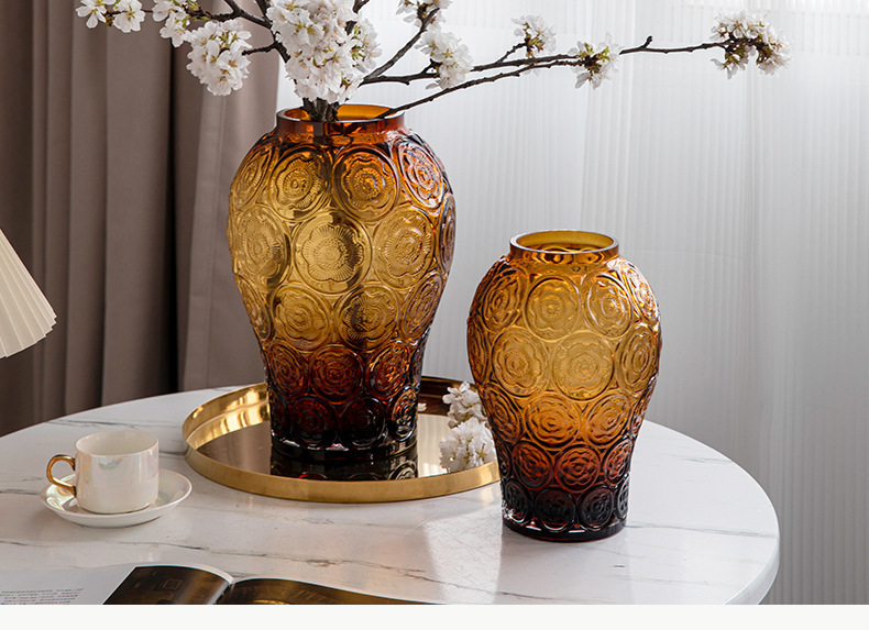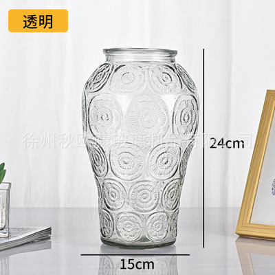 빈티지 양각 꽃병 고급 장식품 in 스타일 고가 대형 유리 꽃병 수경 식물 꽃꽂이 공장스토어 가기