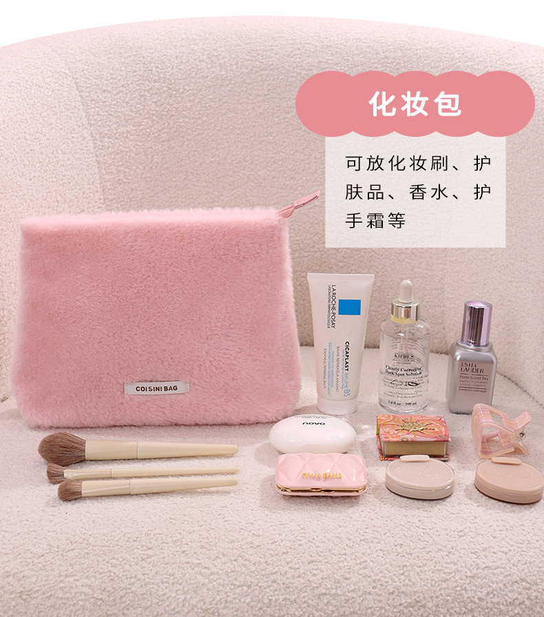 패션 플러시 화장품 가방 여행 휴대용 스킨 케어 보관 가방 겨울 여행 세면 도구 보관 가방 크로스 보더스토어 가기