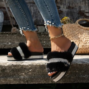 대외 무역 같은 스타일 2023 봄 새로운 사회 인터넷 연예인 유행 겉옷 한 단어 마오 마오 여성용 두꺼운 바닥 샌들과 슬리퍼