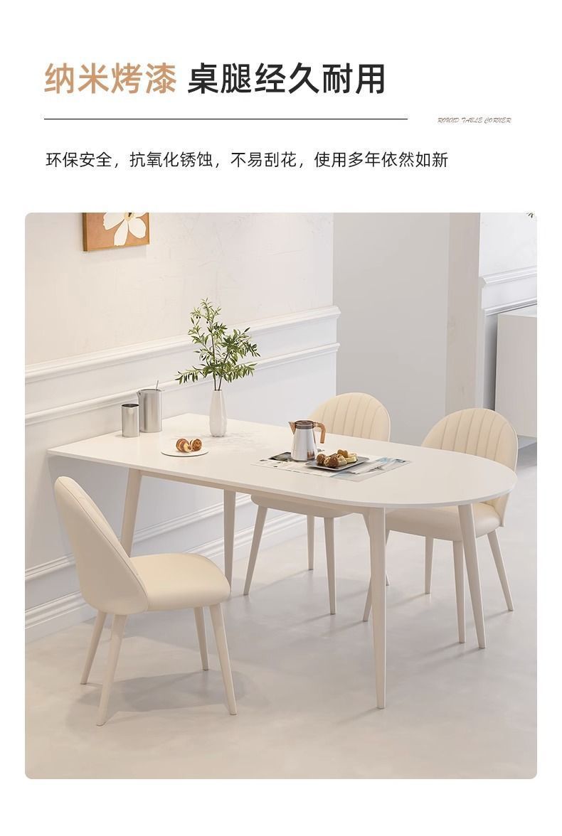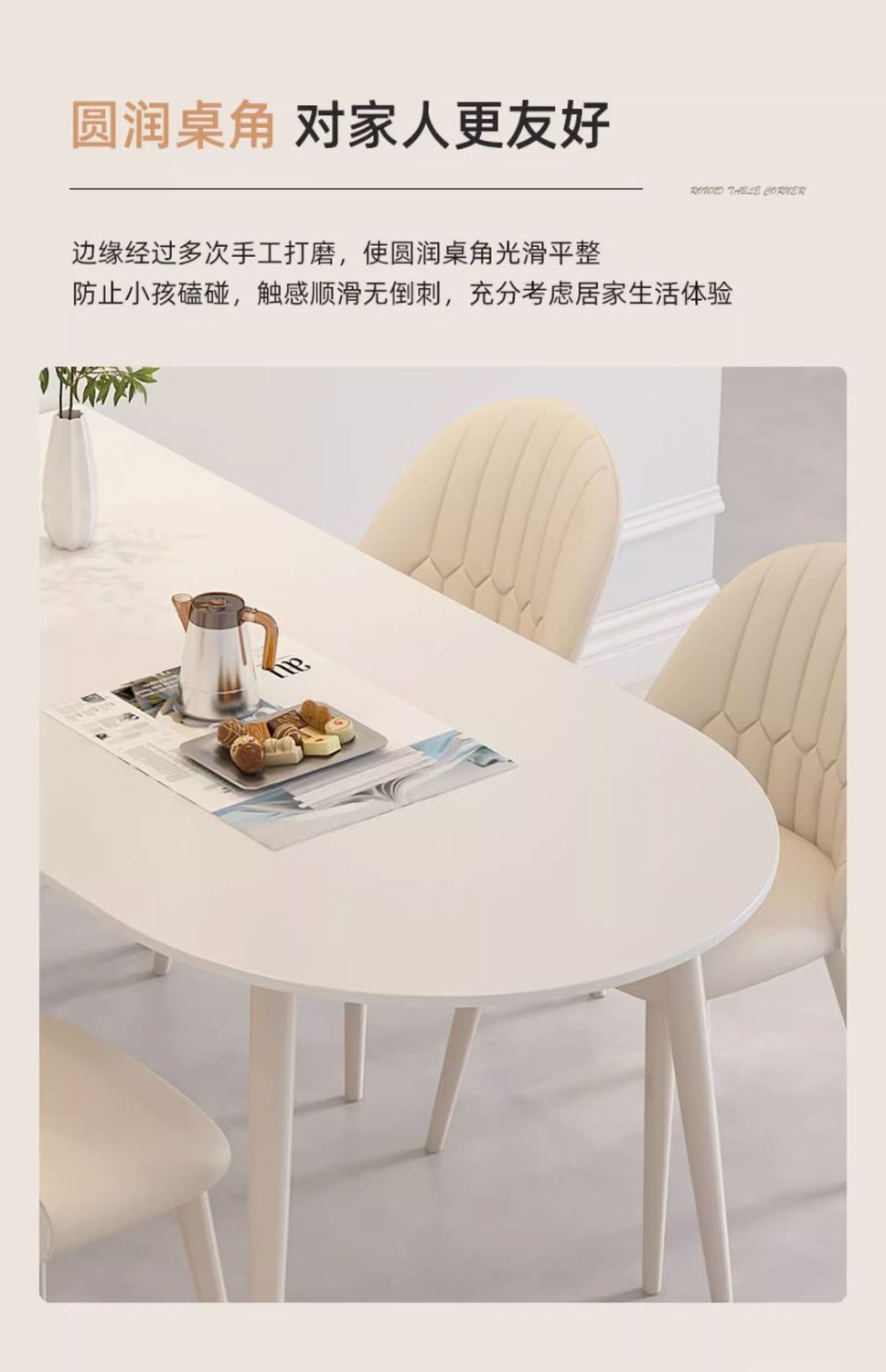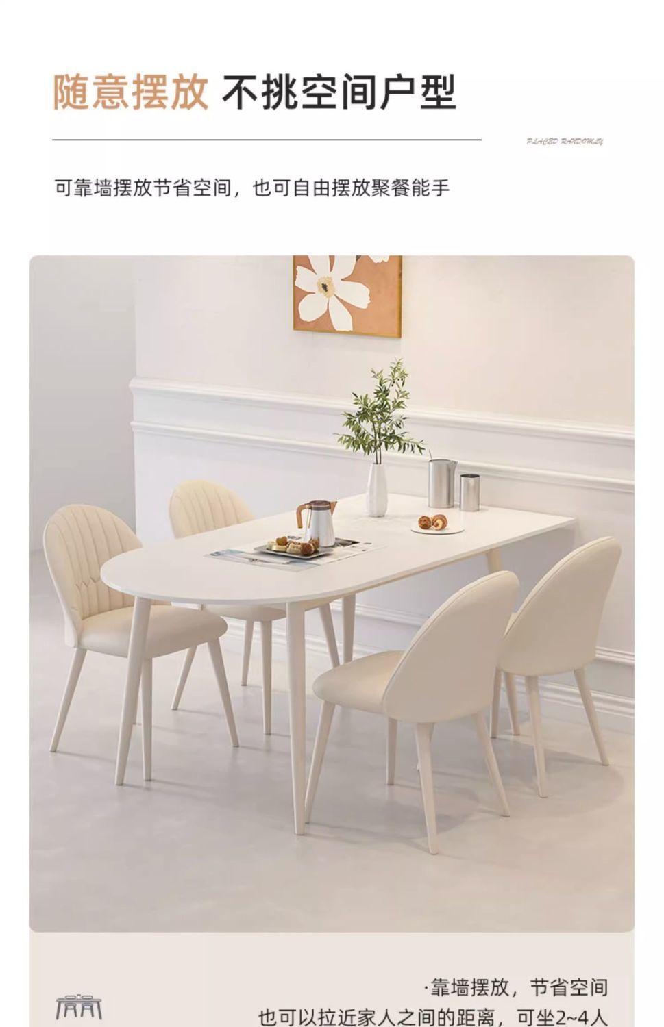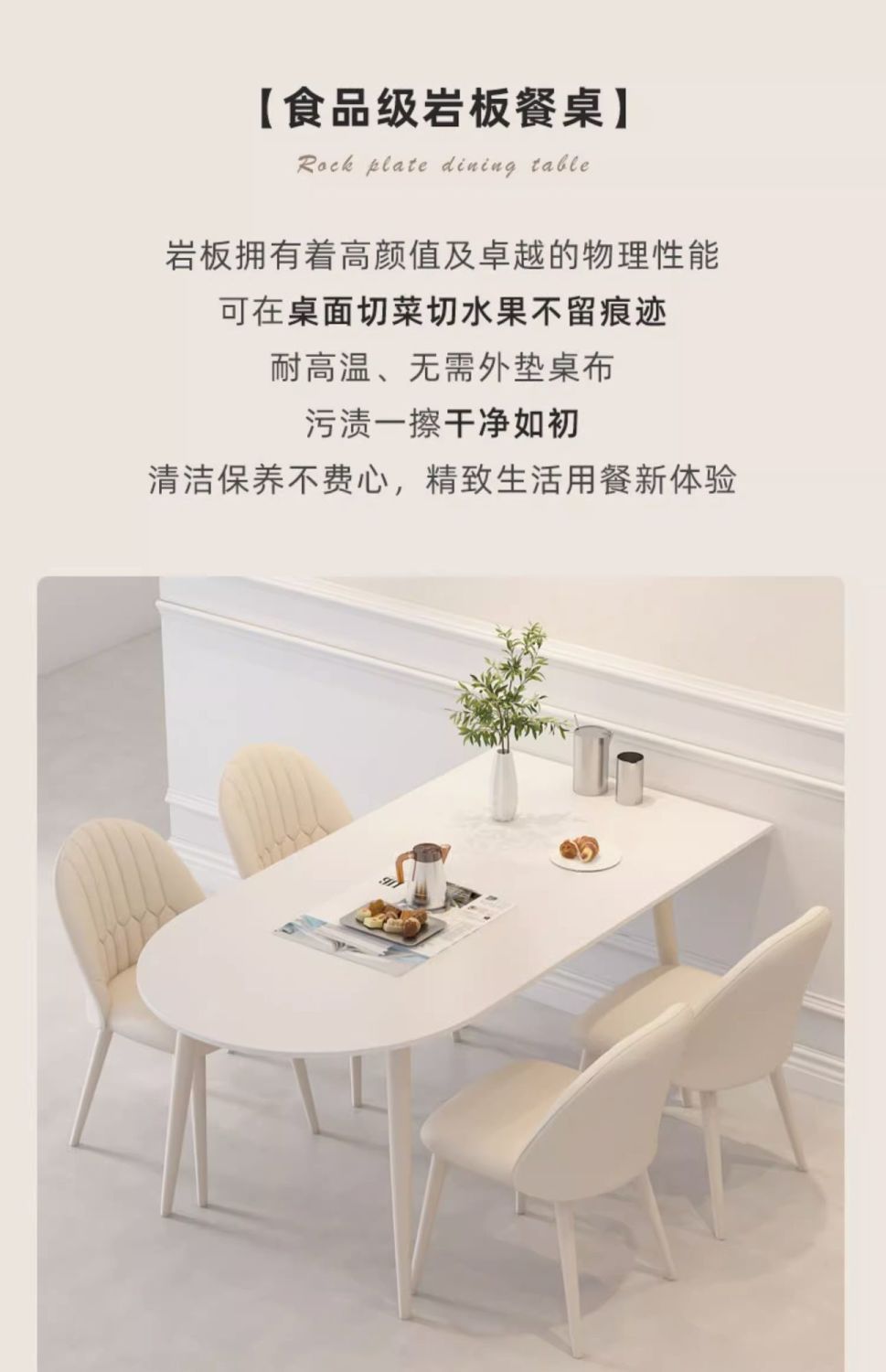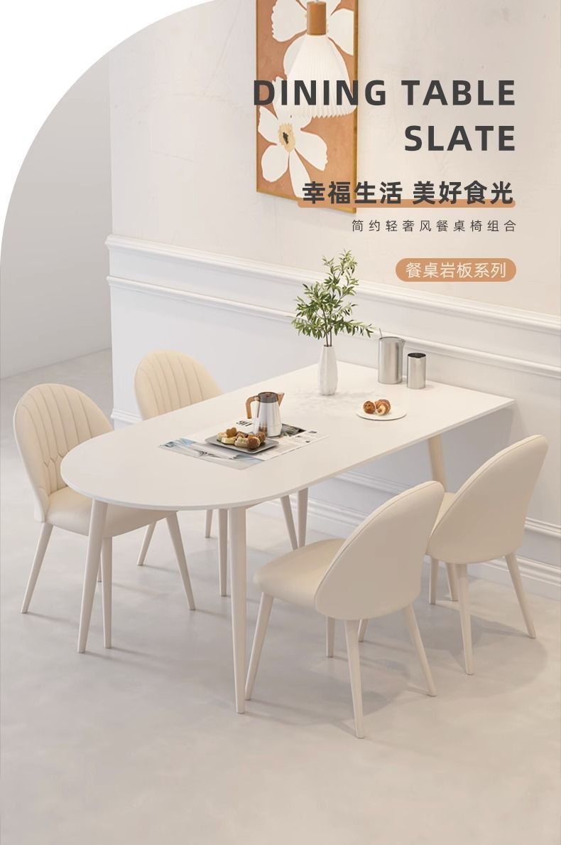크림 스타일 락 보드 식탁 식탁 작은 아파트 타원형 가정용 식탁 및 의자 조합 라이트 럭셔리 모던 심플스토어 가기