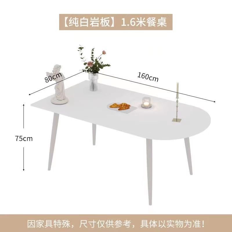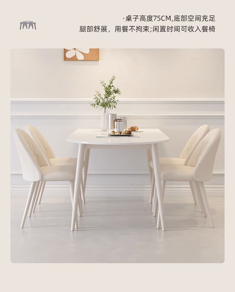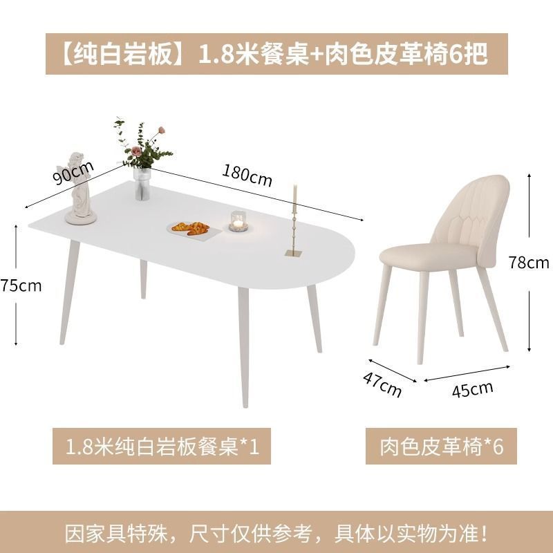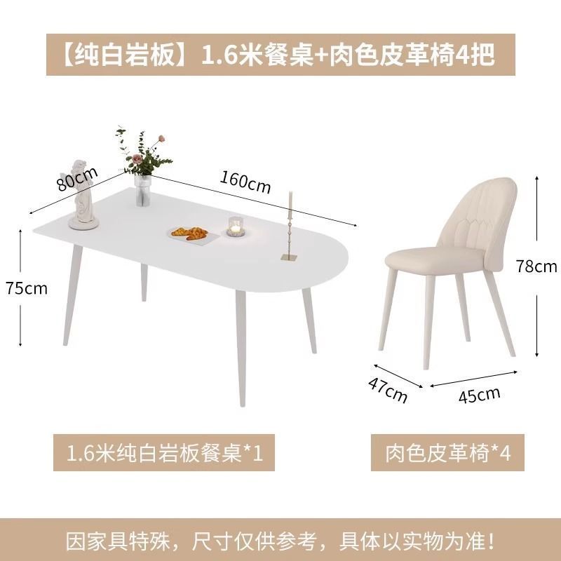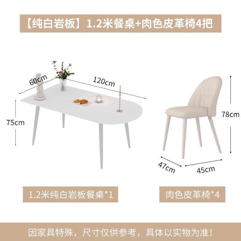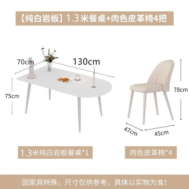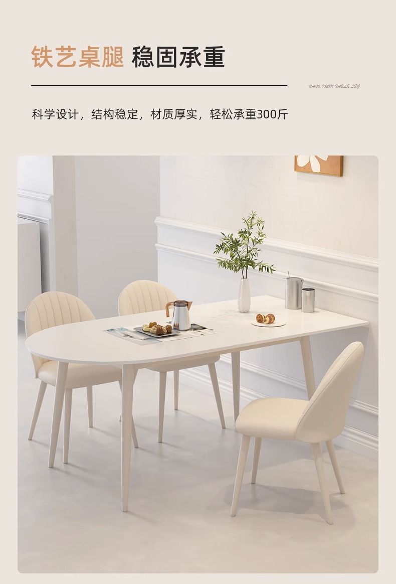 크림 스타일 락 보드 식탁 식탁 작은 아파트 타원형 가정용 식탁 및 의자 조합 라이트 럭셔리 모던 심플스토어 가기