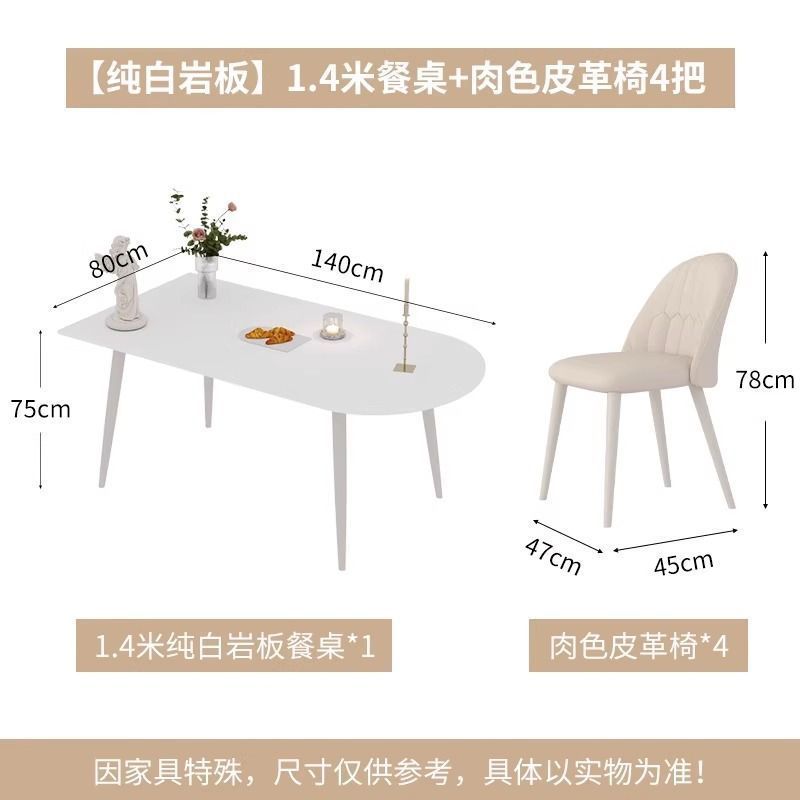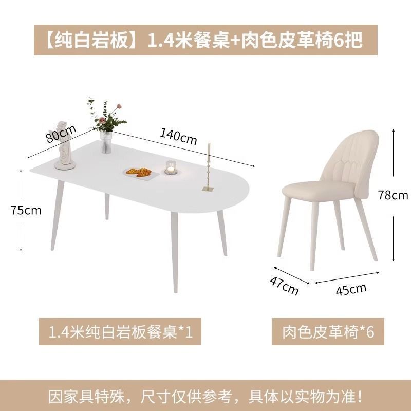 크림 스타일 락 보드 식탁 식탁 작은 아파트 타원형 가정용 식탁 및 의자 조합 라이트 럭셔리 모던 심플