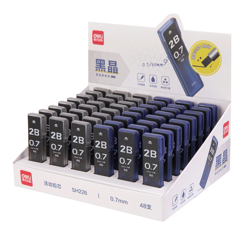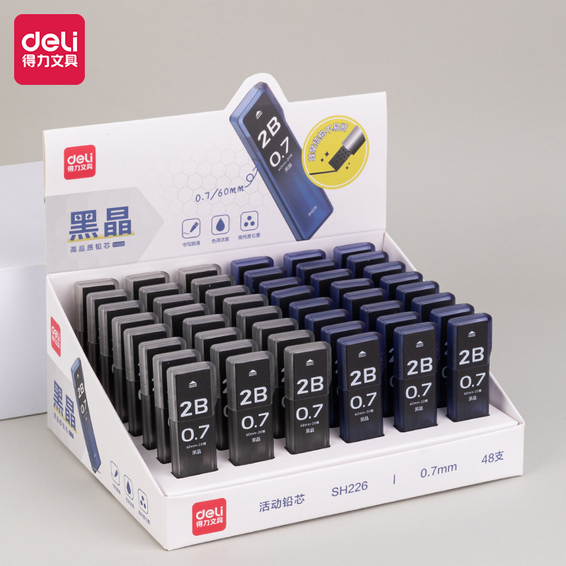 델리 SH225/226 블랙 크리스탈 하이 퀄리티 리드 코어 초등 학생 사용 2b 리드 코어 자동 펜 리드 코어 0.7mm 활동