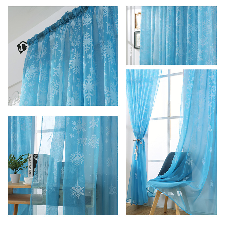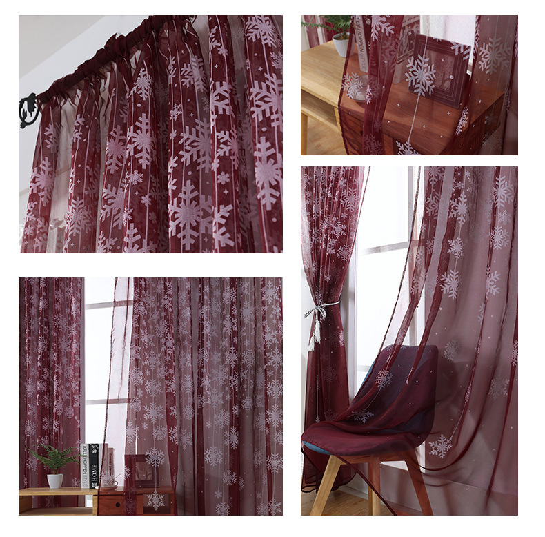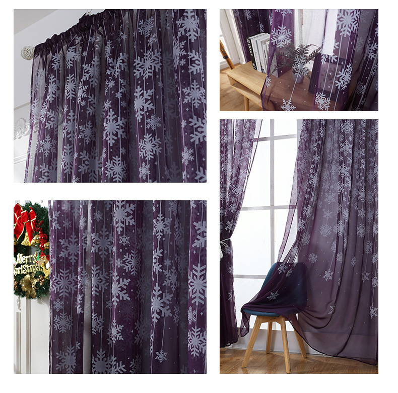 국경 간 인기 제품 아마존 이베이 AliExpress 눈송이 크리스마스 커튼 인쇄 창 스크린 커튼 크리스마스 커튼
