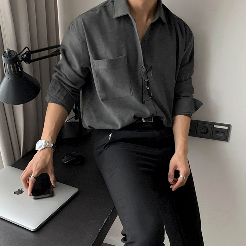 이른 가을 회색 셔츠 남자의 옷깃 느슨한 모든 일치 긴 소매 탑 한국 아메리칸 스타일 한국 동대문 남성 패션스토어 가기