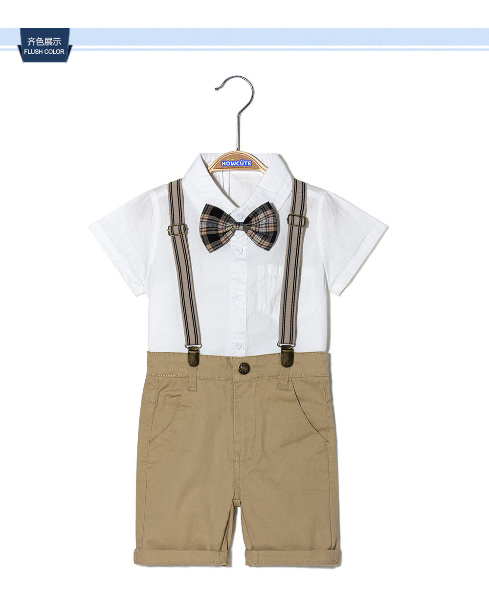 크로스 보더 남아 '투 피스 재고 도매 소년 아기 신사 면 셔츠 슬링 반바지 어린이 원피스 세트