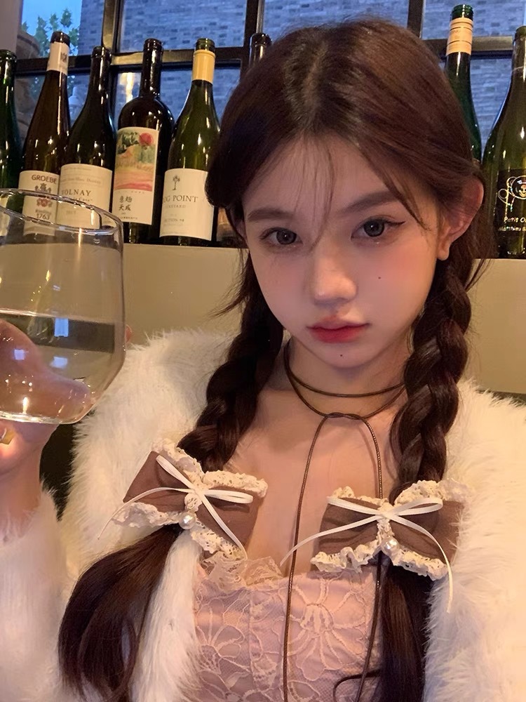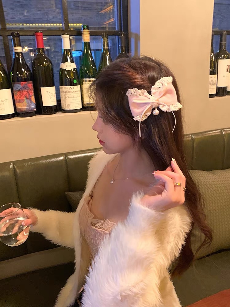 [복숭아 차] 부드러운 휴일 달콤한 활 머리핀 여성용 가을과 겨울 사이드 클립 모자 쌍 머리핀