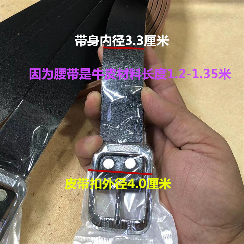 整张牛皮现切割支持定制所有尺寸长度.购买须知尺寸这里说的4公分是腰带扣外径’‘’‘腰带内径尺寸是3.3厘米左右3.5公分的腰带内径3厘米尺寸会有一个1毫米的误差介意的勿拍 ... 由于是手工制作皮带反面难免有污点但是不影响整体质量和使用.因为是牛皮材质个别厚度是不一样的介意 的或者鸡蛋挑骨头的慎拍..此款是牛皮切割加工的结实耐用使用寿命久....大量批发联系客服发物流运费到付