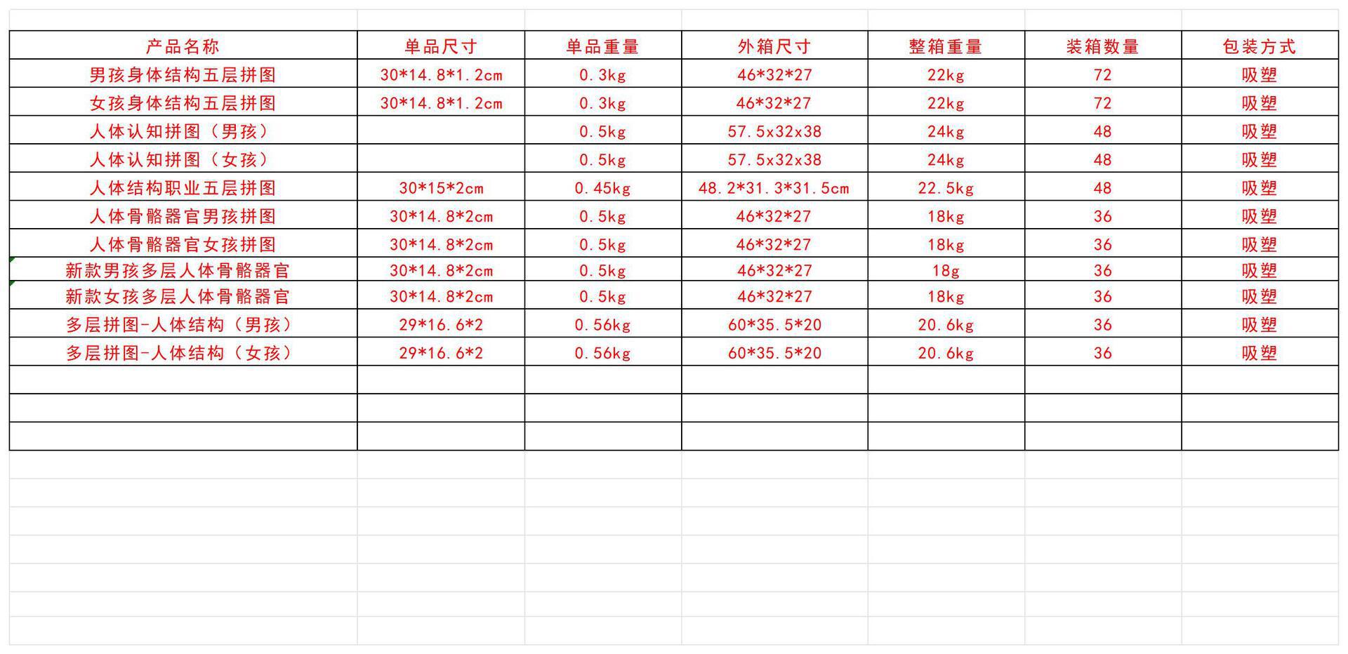 产品名称  人体多层认知拼图